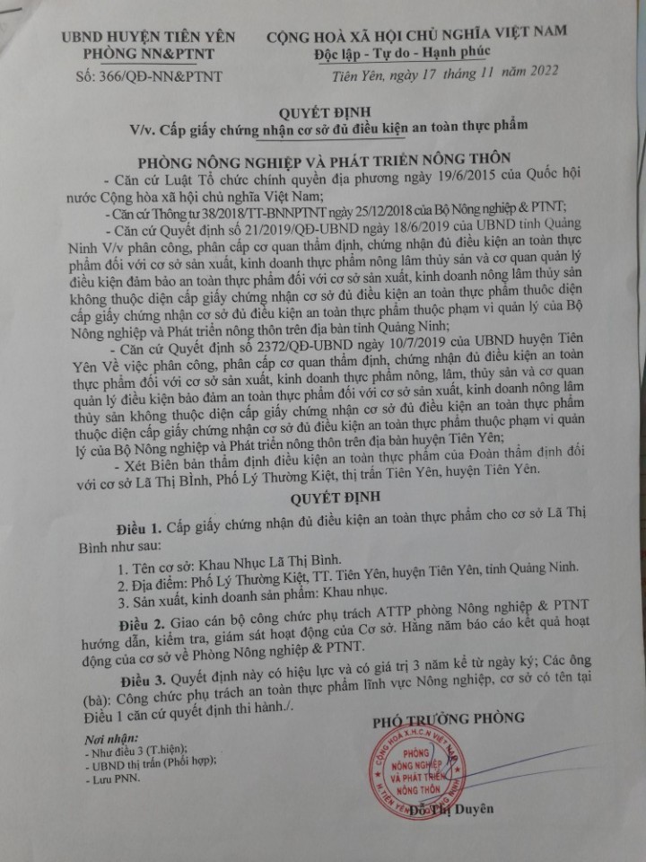 THỰC PHẨM AN TOÀN TỈNH QUẢNG NINH