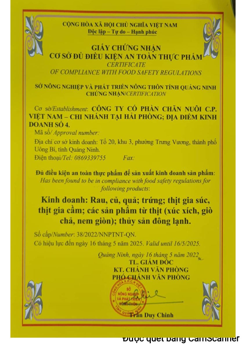Công ty cổ phần nuôi C.P.Việt Nam - Chi nhánh Hải Phòng; Địa điểm kinh doanh số 04
