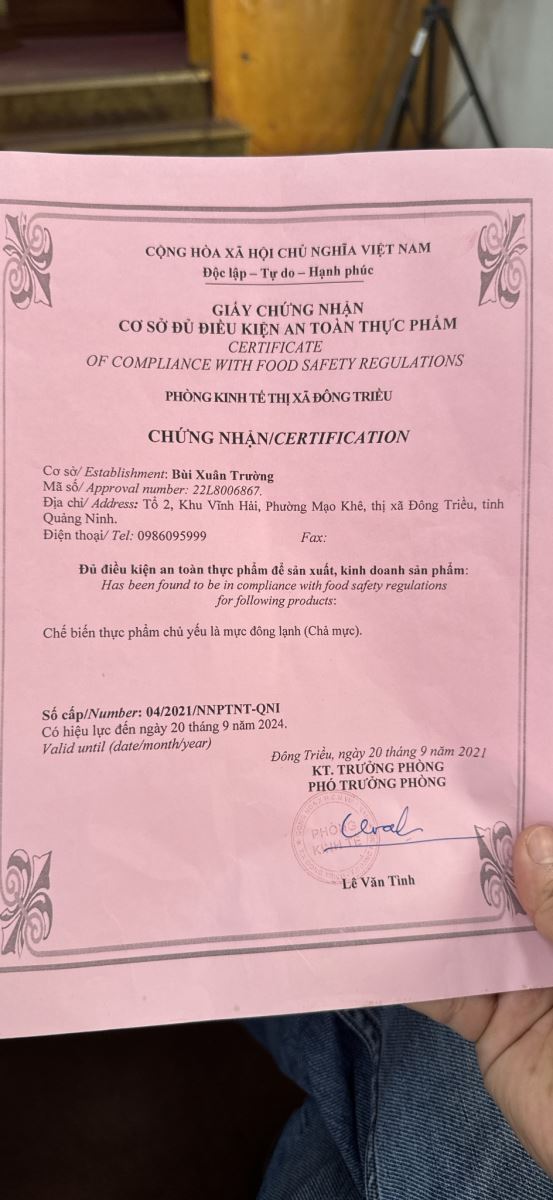Cơ sở chế biến chả mực Bùi Xuân Trường