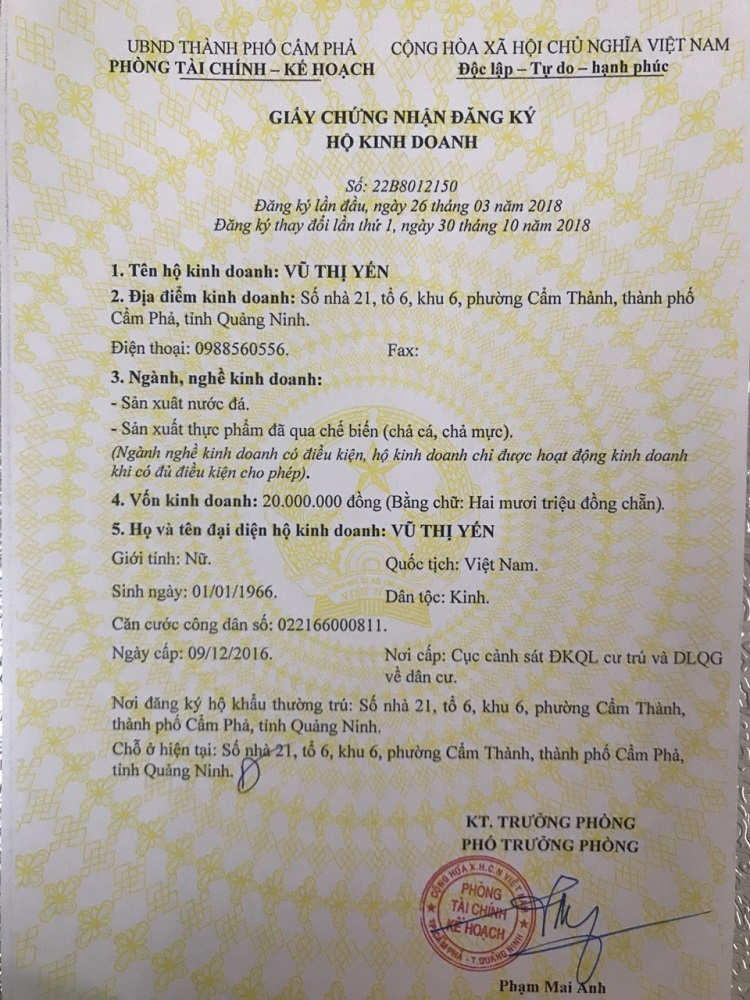 Hộ kinh doanh Vũ Thị Yến