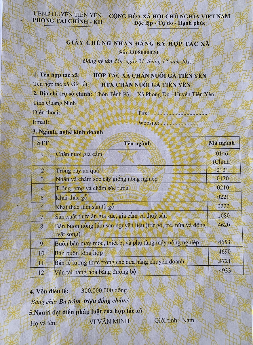 Hợp tác xã chăn nuôi gà Tiên Yên