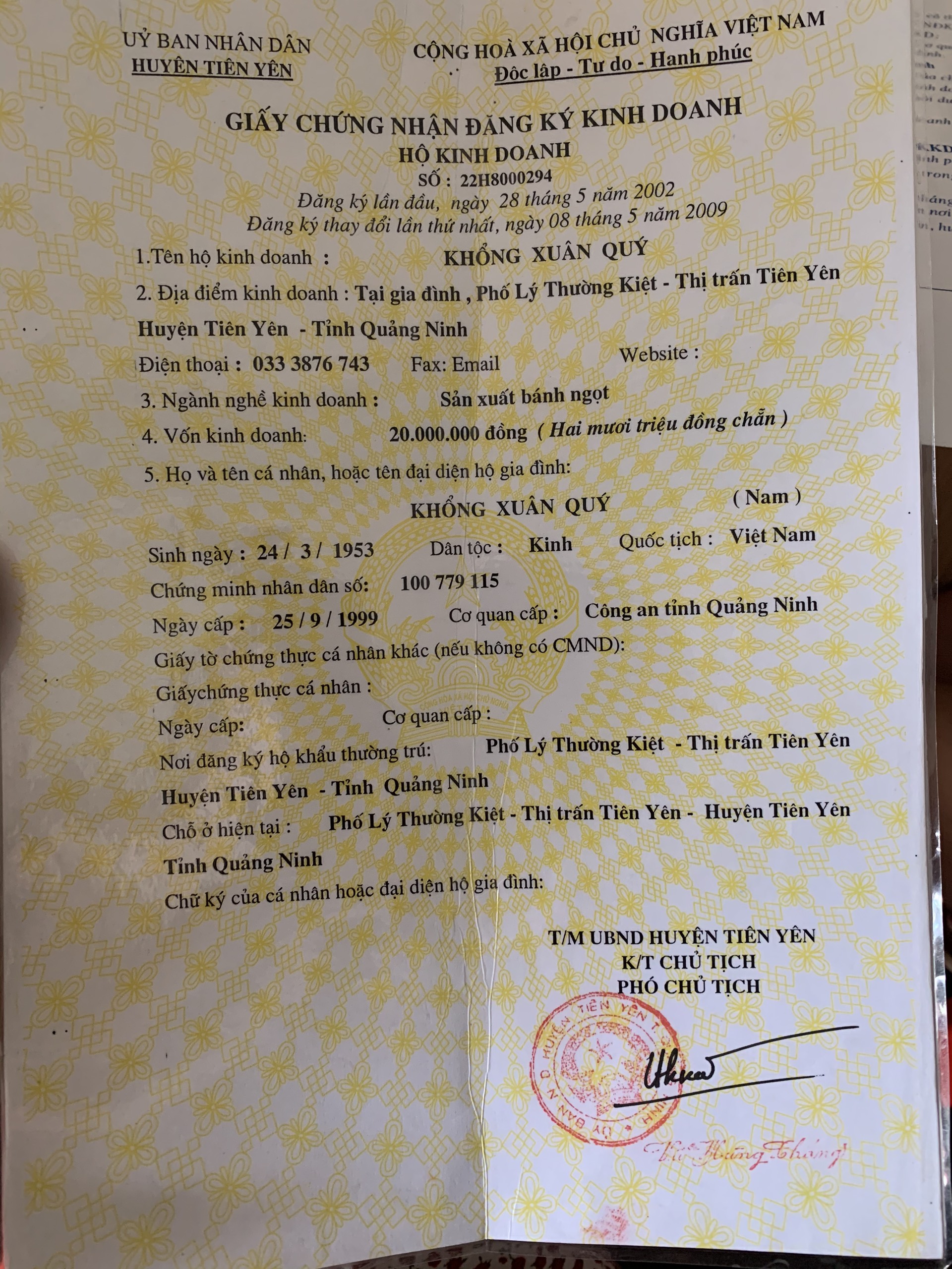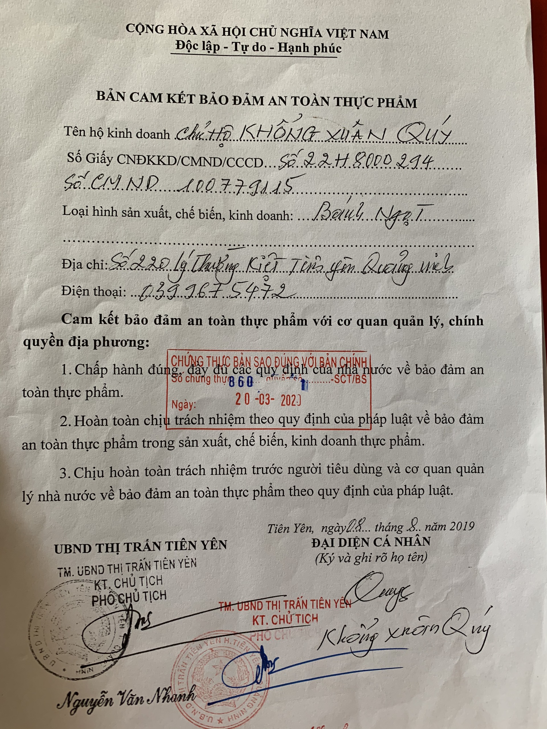 Số 220, phố Lý Thường Kiệt, thị trấn Tiên Yên, huyện Tiên Yên, tỉnh Quảng Ninh