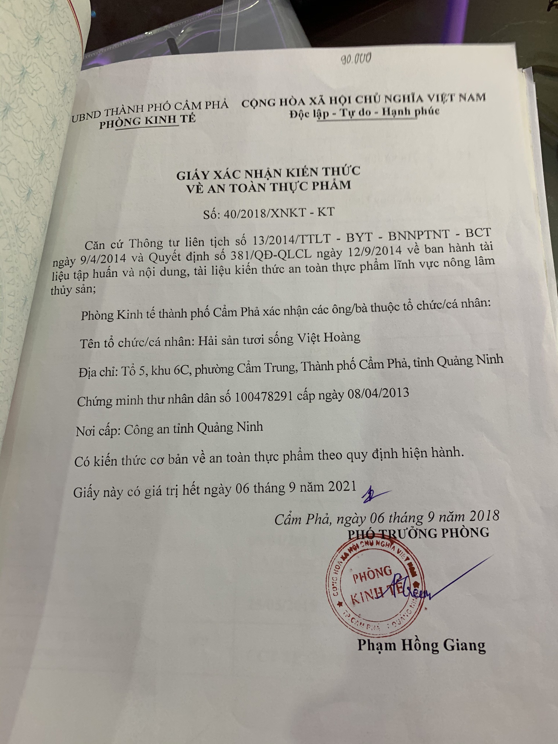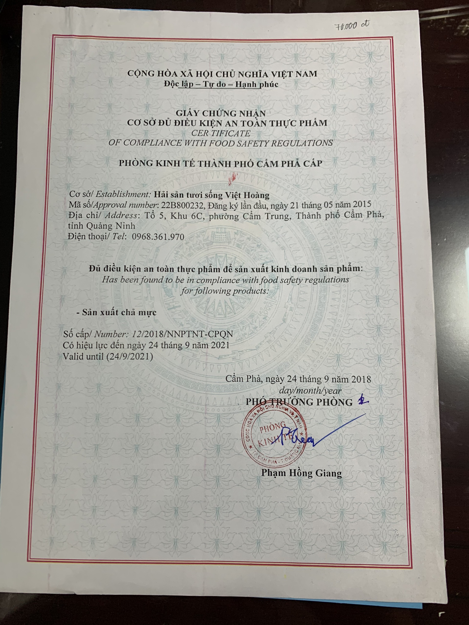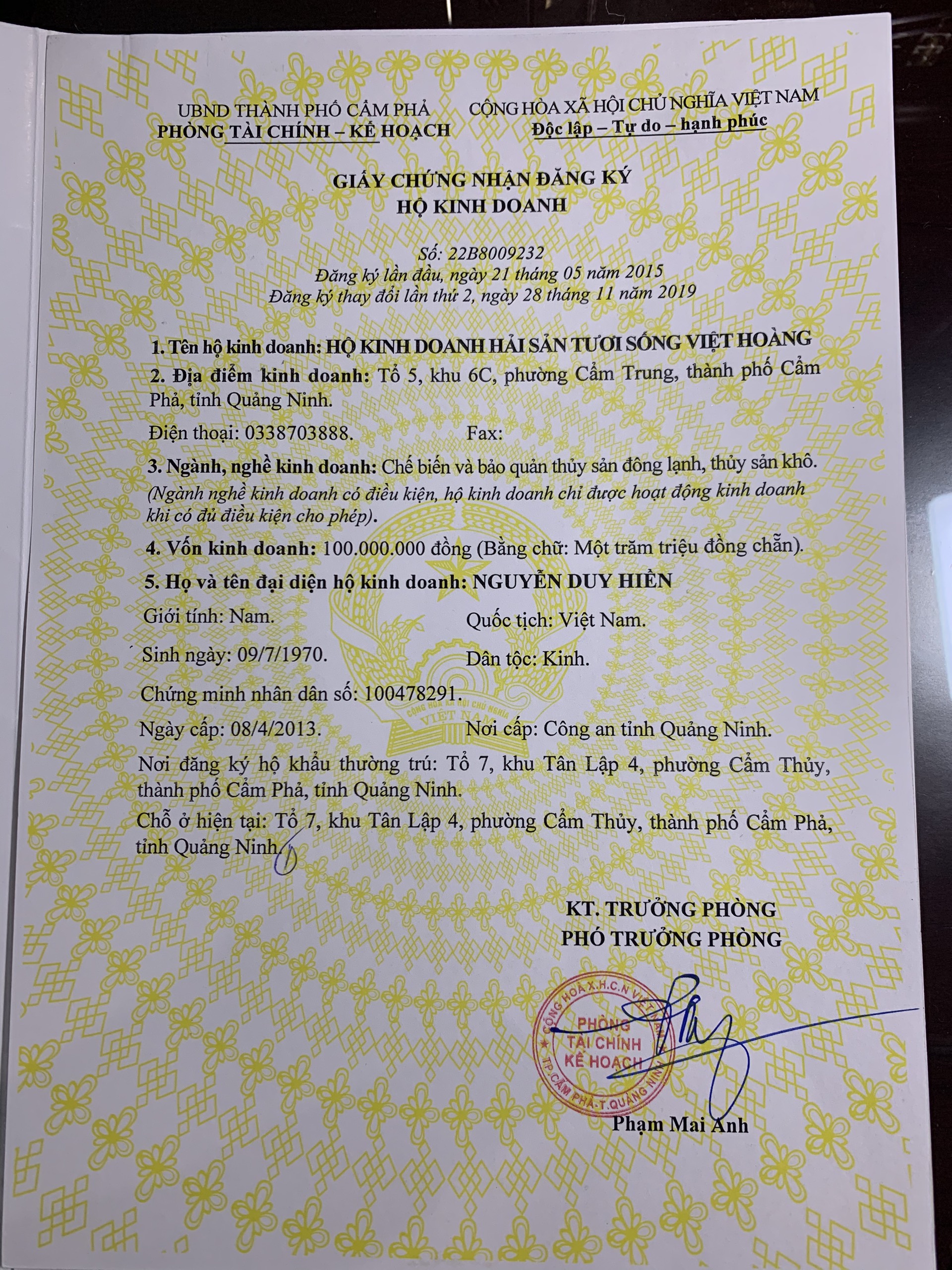 Hộ kinh doanh hải sản tươi sống Việt Hoàng