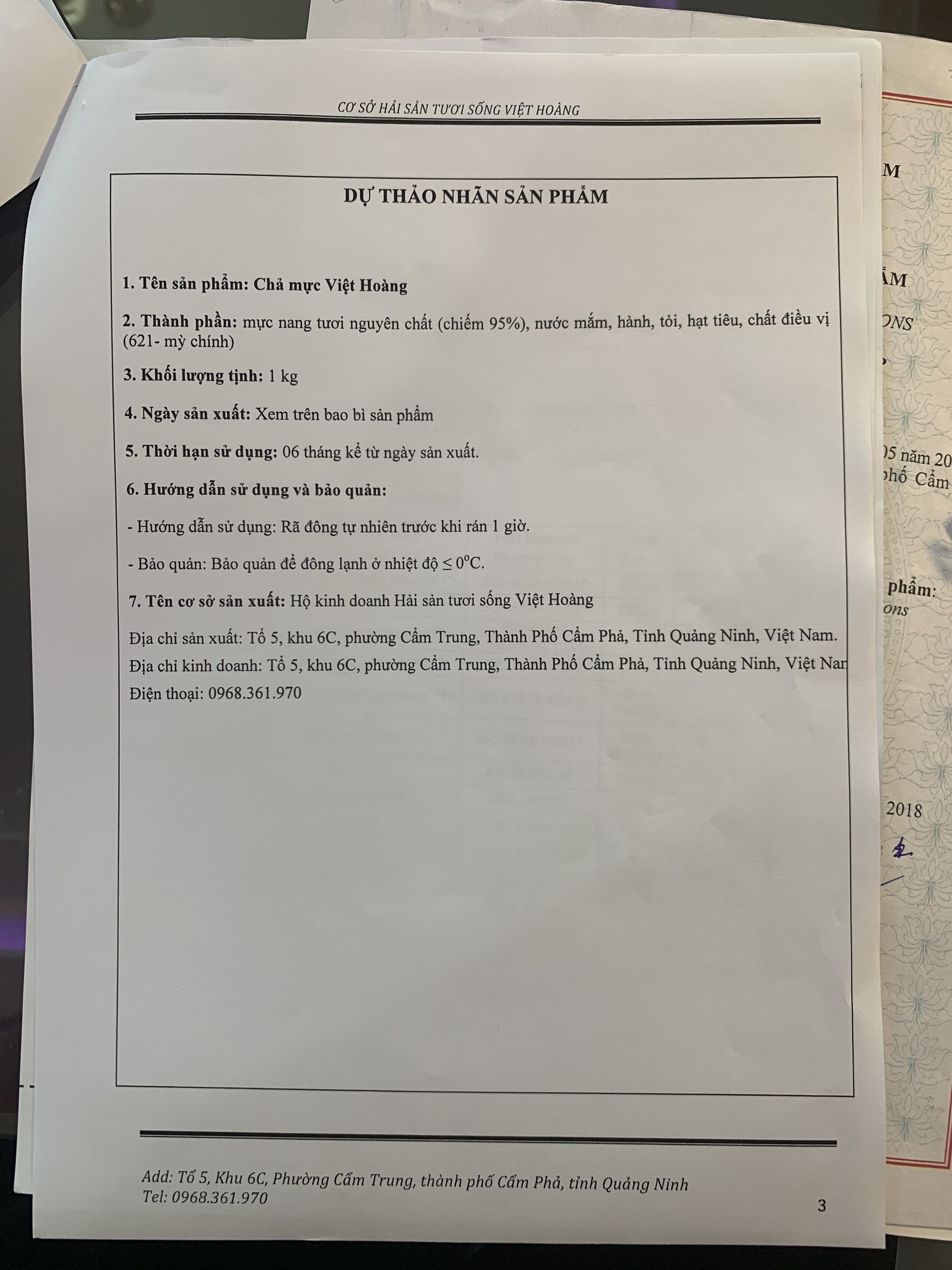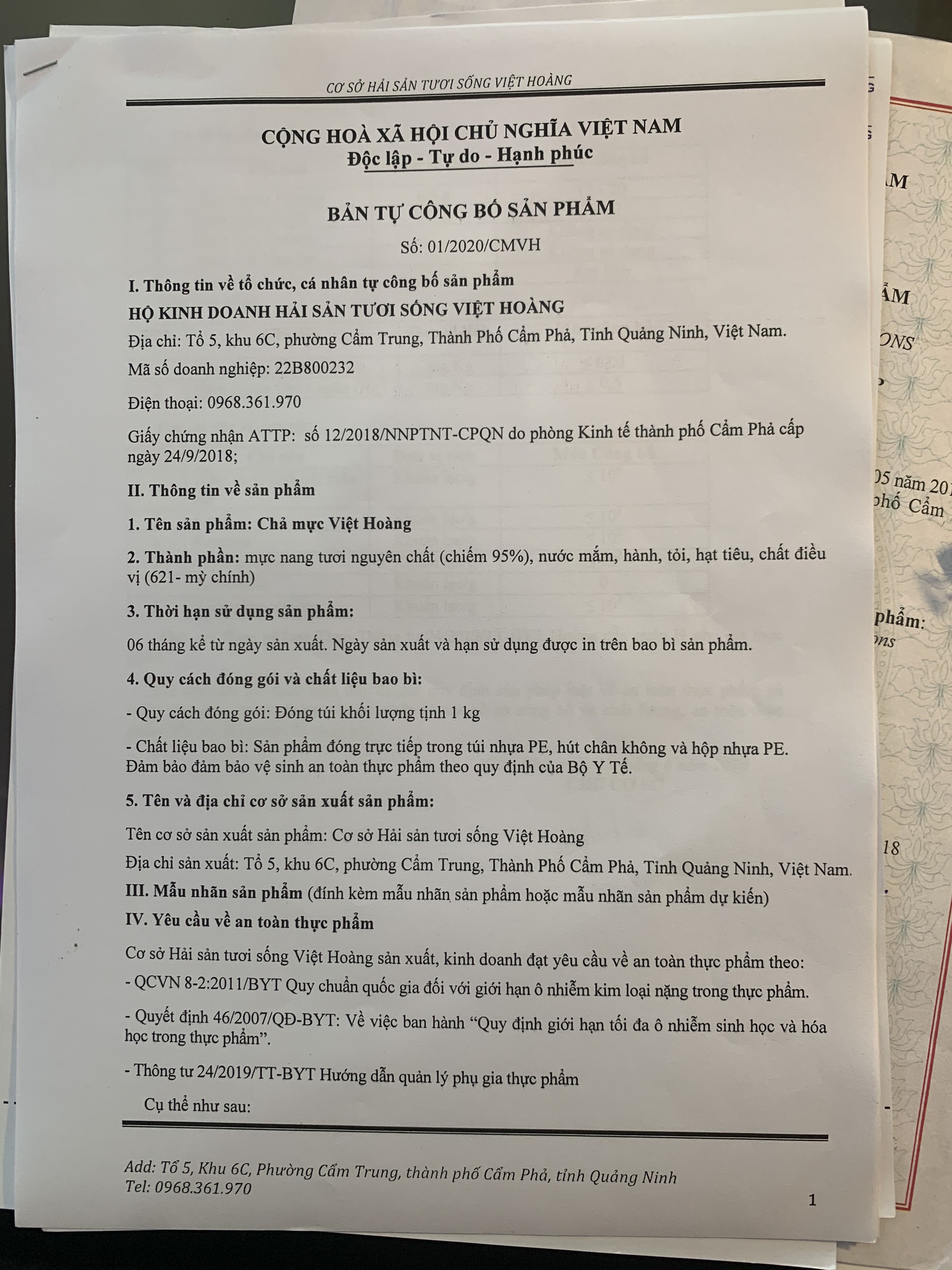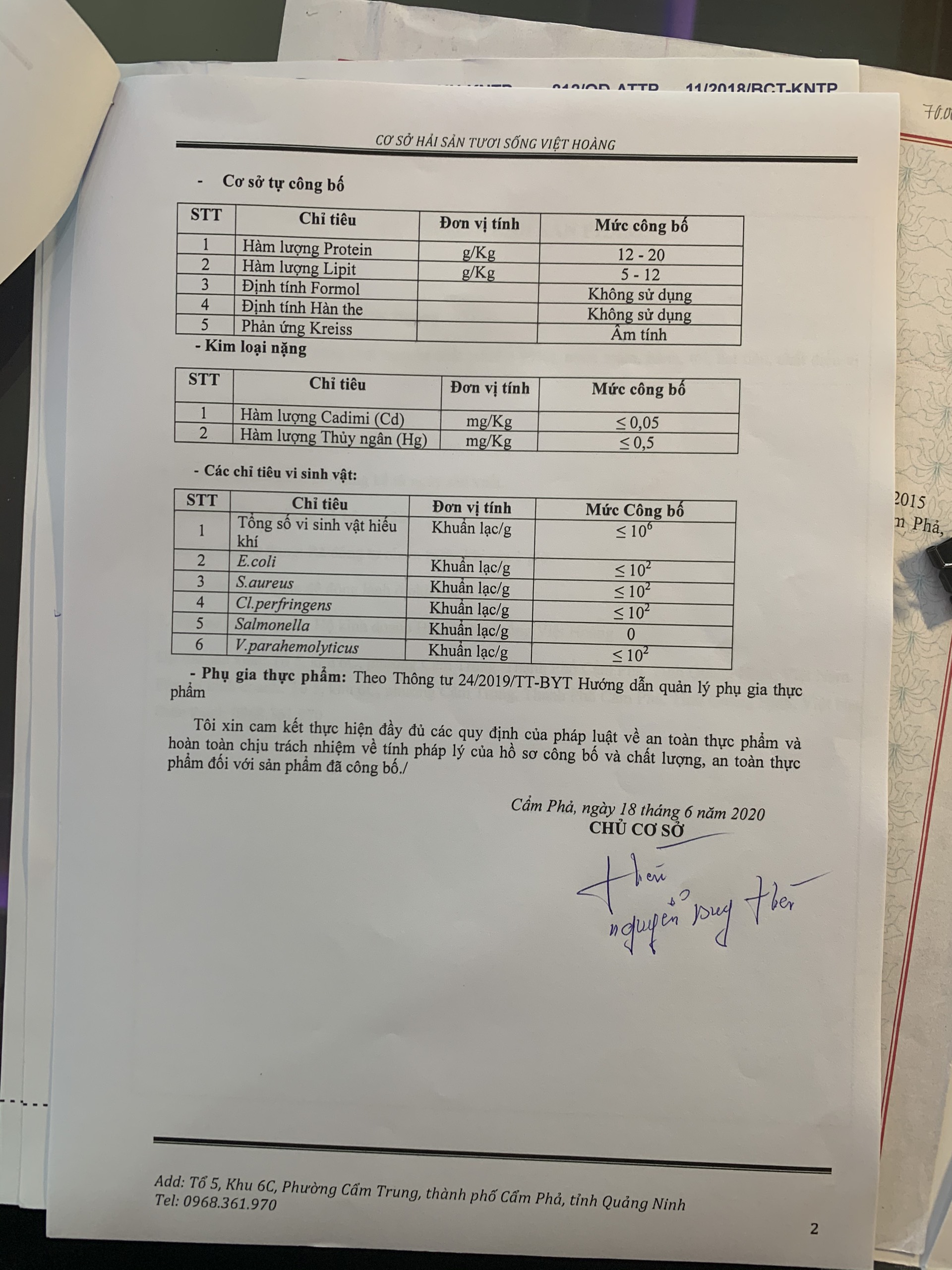 Hộ kinh doanh hải sản tươi sống Việt Hoàng