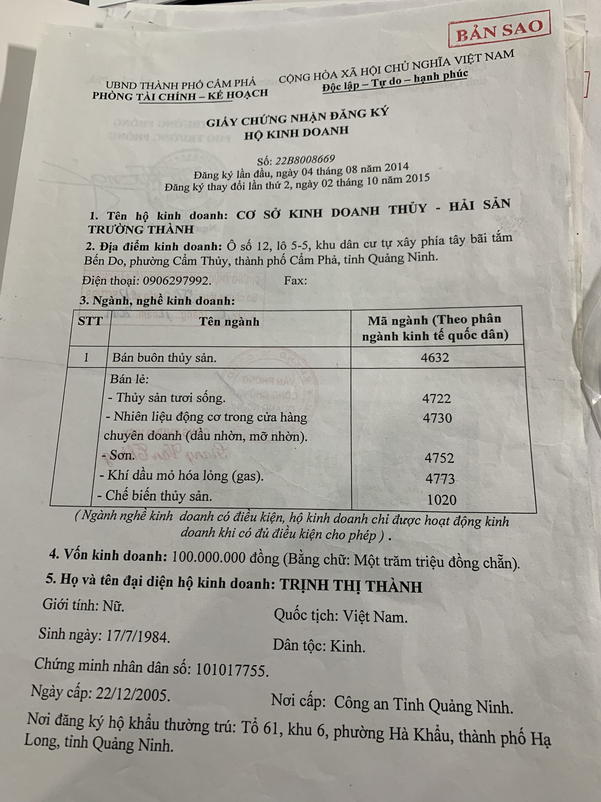 tổ 5, khu 6C phường Cẩm Trung, TP. Cẩm Phả, Quảng Ninh