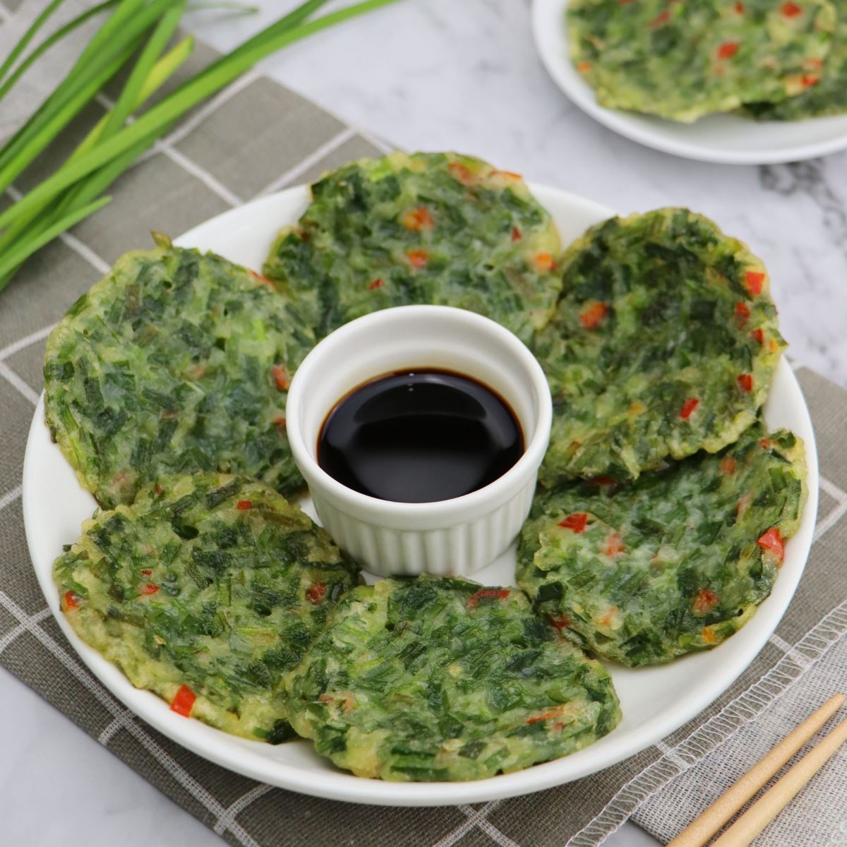 Thành phần: Lá hẹ, nước tinh khiết, bột chiên, bột mì, tinh bột sắn, dầu ăn, ớt đỏ, ớt xanh, đường, muối tinh, chất điều vị: Mononatri glutamate (621)