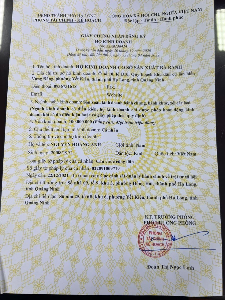 Tên đơn vị/nhà sản xuất: HỘ KINH DOANH CƠ SỞ SẢN XUẤT BÀ BÁNH