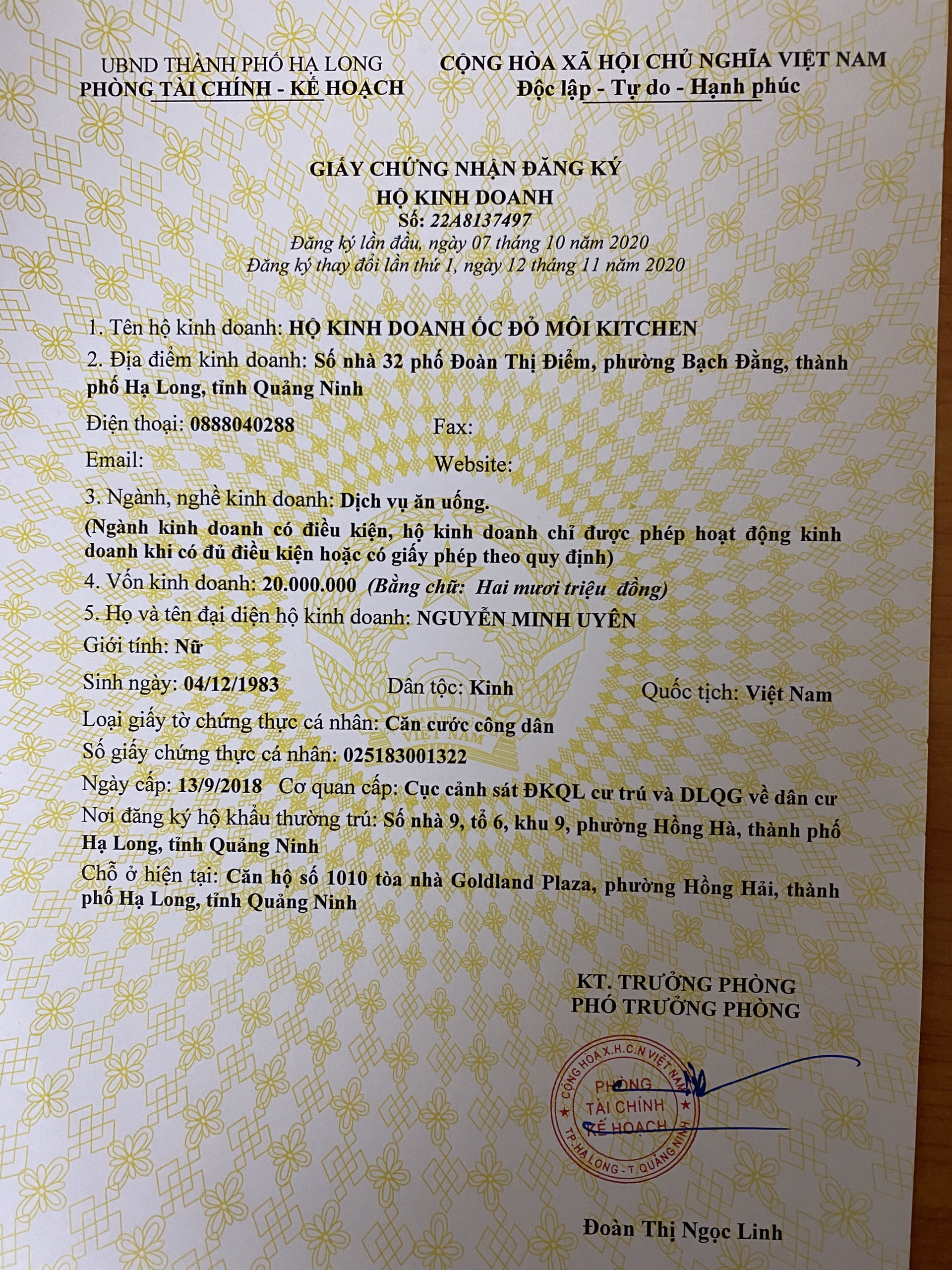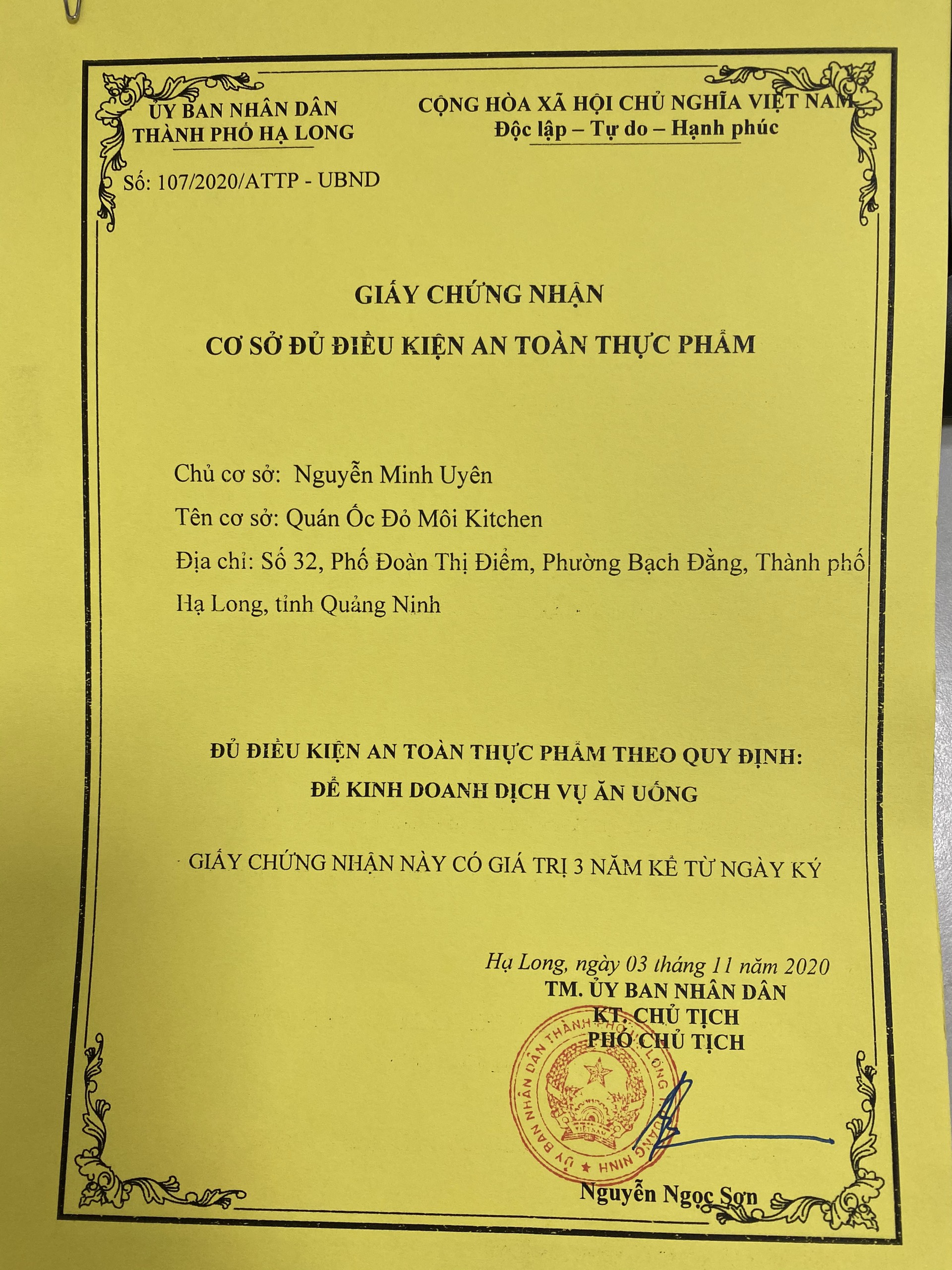 Tên đơn vị/nhà sản xuất: HKD ốc đỏ môi Kitchen