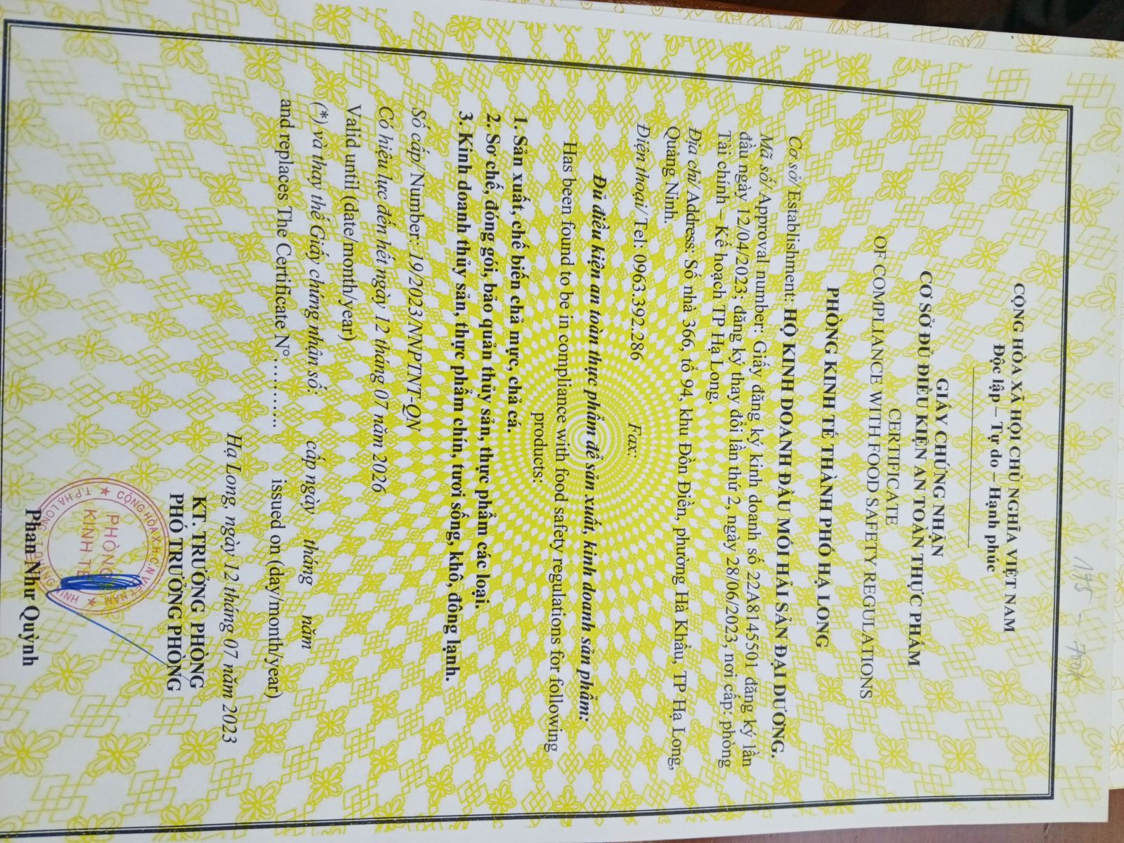 Địa chỉ: Số nhà 366, tổ 94, Khu Đồn Điền, phường Hà Khẩu, thành phố Hạ Long, tỉnh Quảng Ninh
