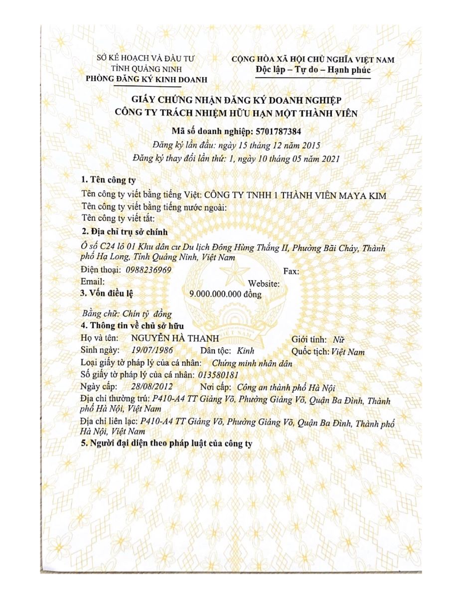 Tên đơn vị/nhà sản xuất: Công ty TNHH 1 thành viên Maya Kim