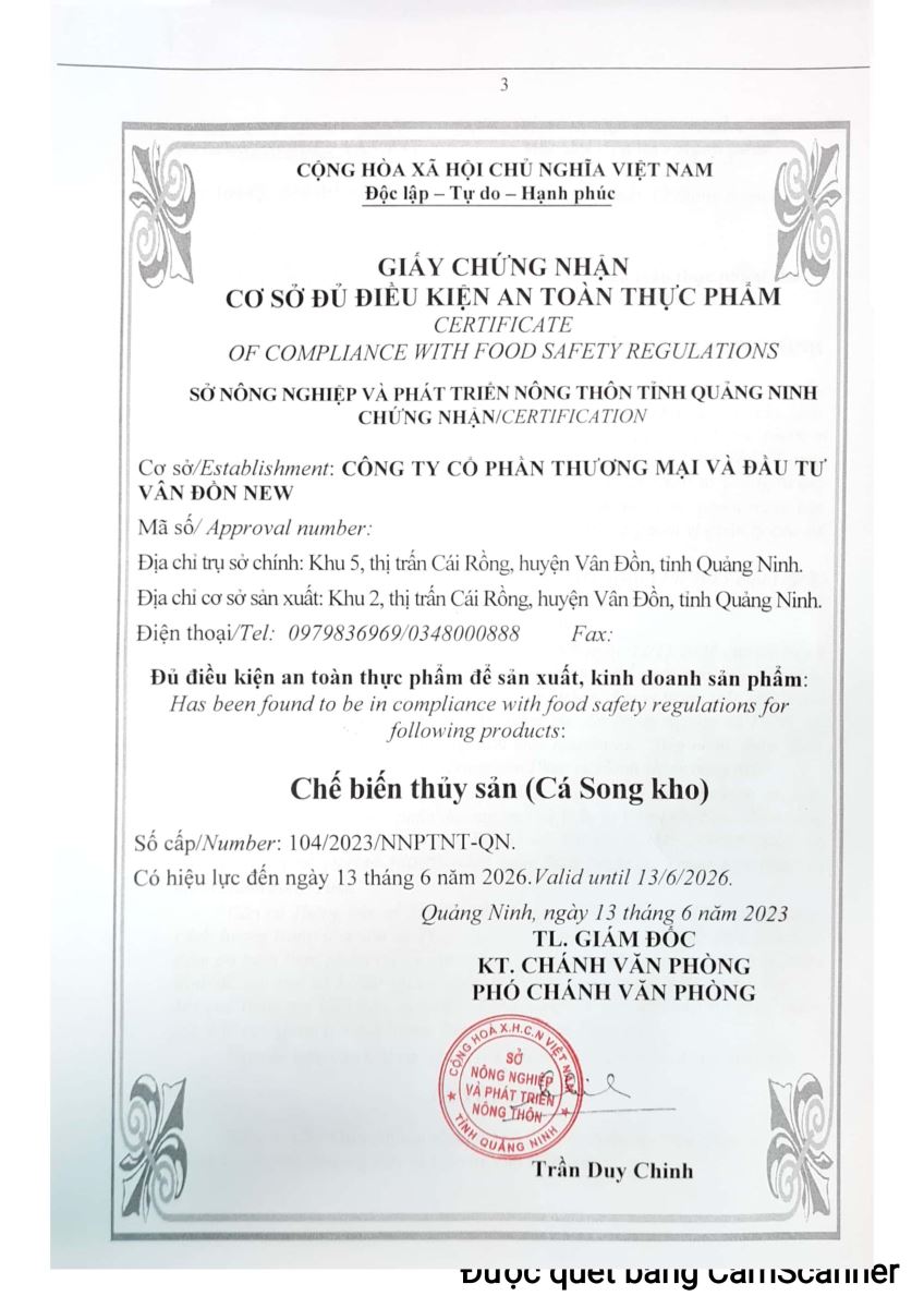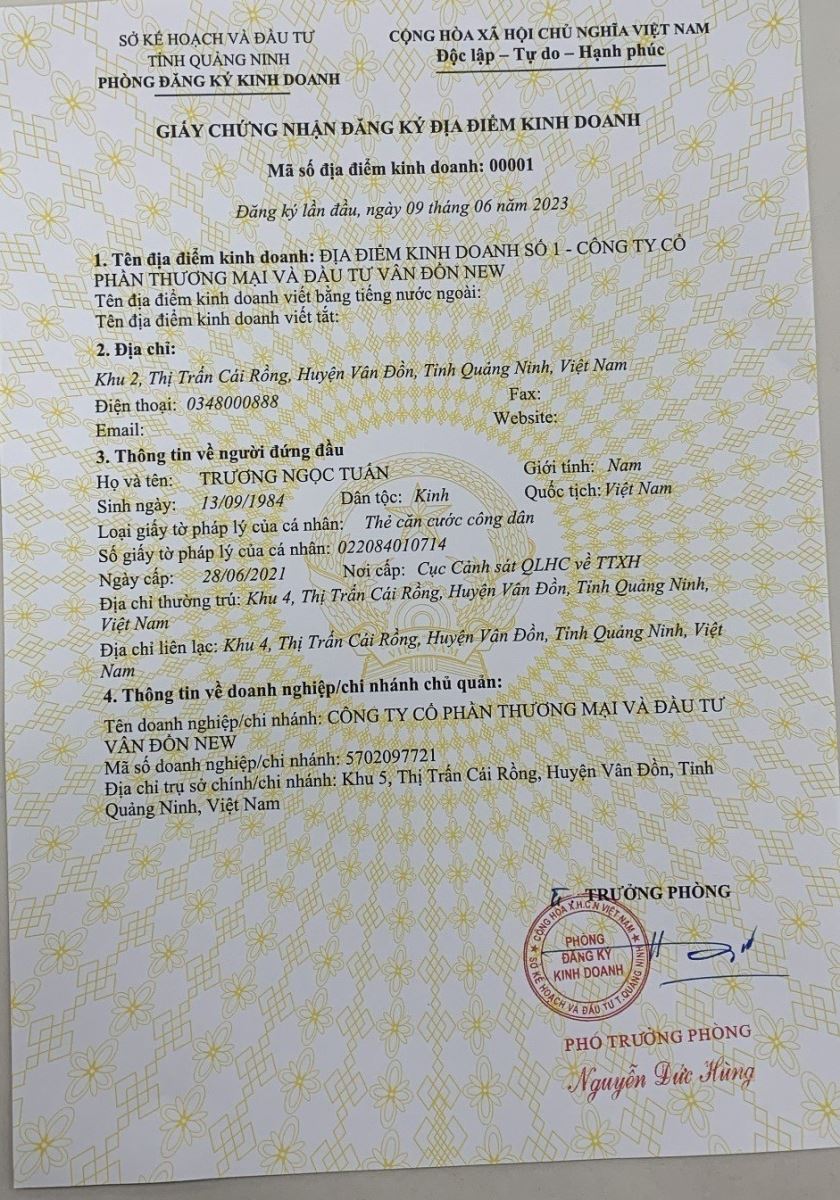 Tên đơn vị/nhà sản xuất: Công ty cổ phần thương mại và đầu tư Vân Đồn New