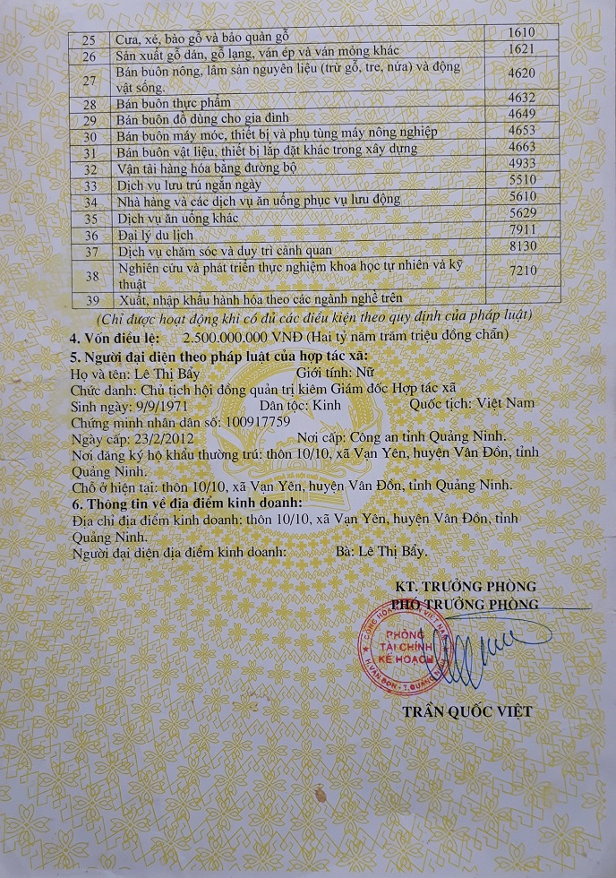 Địa chỉ: Thôn 10/10, Xã Vạn Yên, Huyện Vân Đồn, tỉnh Quảng Ninh