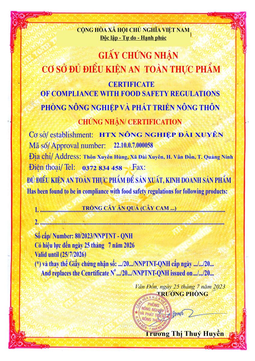 Tên đơn vị/nhà sản xuất: Hợp tác xã nông nghiệp Đài Xuyên