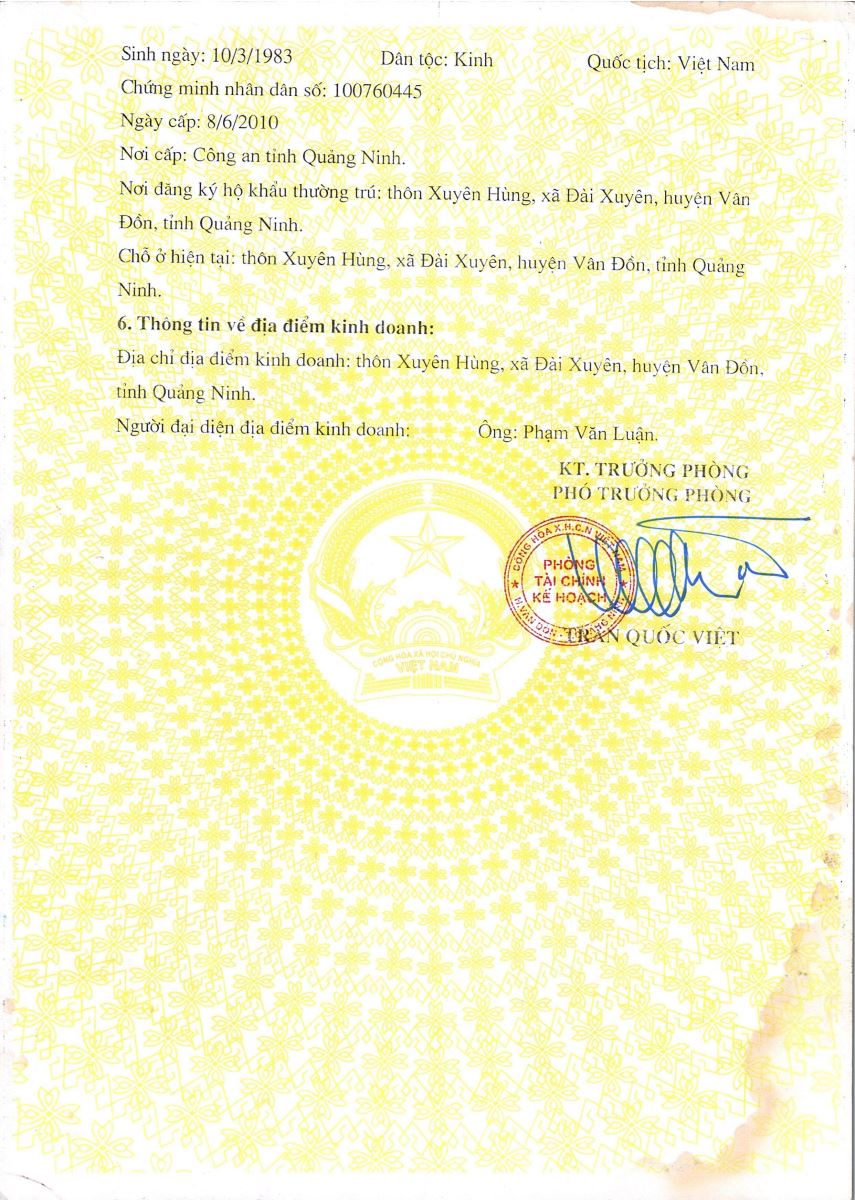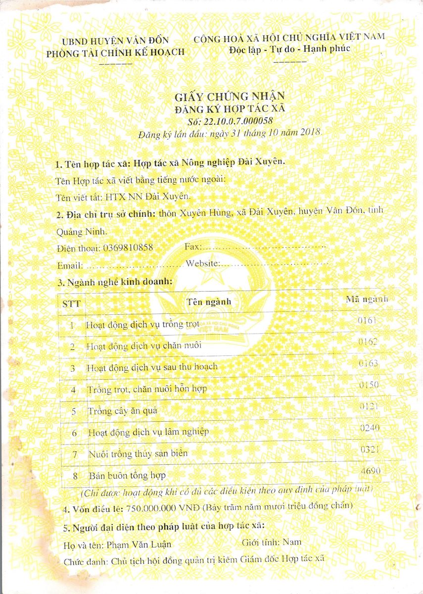 Địa chỉ: Thôn Xuyên Hùng, xã Đài Xuyên, huyện Vân Đồn, tỉnh Quảng Ninh
