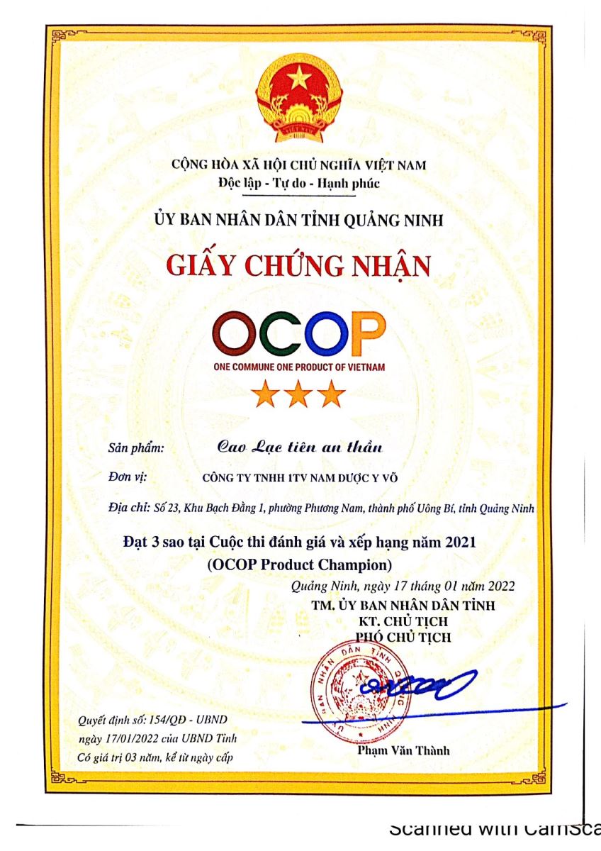 Sự kết hợp giữa nước tinh khiết của suối yên sơn, linh dược Yên Tử đã tạo nên phương thuốc độc đáo giúp cho các vị vị tu hành và bá tánh ở xung quanh vùng núi Yên Sơn hết các chứng mất ngủ, ngủ không sâu giấc, tinh thần uể oải, tuệ nhãn hư tổn. Khi dùng Cao Lạc Tiên An Thần các vị sư được yên tâm tu tập, bá tánh mạnh khỏe, yên ổn bình an, thanh tâm mẫn trí. Xuất phát từ điều kiện thuận lợi và cơ duyên của Dược Sư đã ban tặng. Công ty TNHH MTV Nam Dược Y Võ đã sản xuất bài thuốc bí truyền để giúp cho nhân dân đồng thời góp phần nhỏ bé theo tinh thần Chỉ Thị 24/CT-TƯ của Ban Bí Thư TW Đảng về xây dựng nền đông y Việt Nam trong tình hình mới.