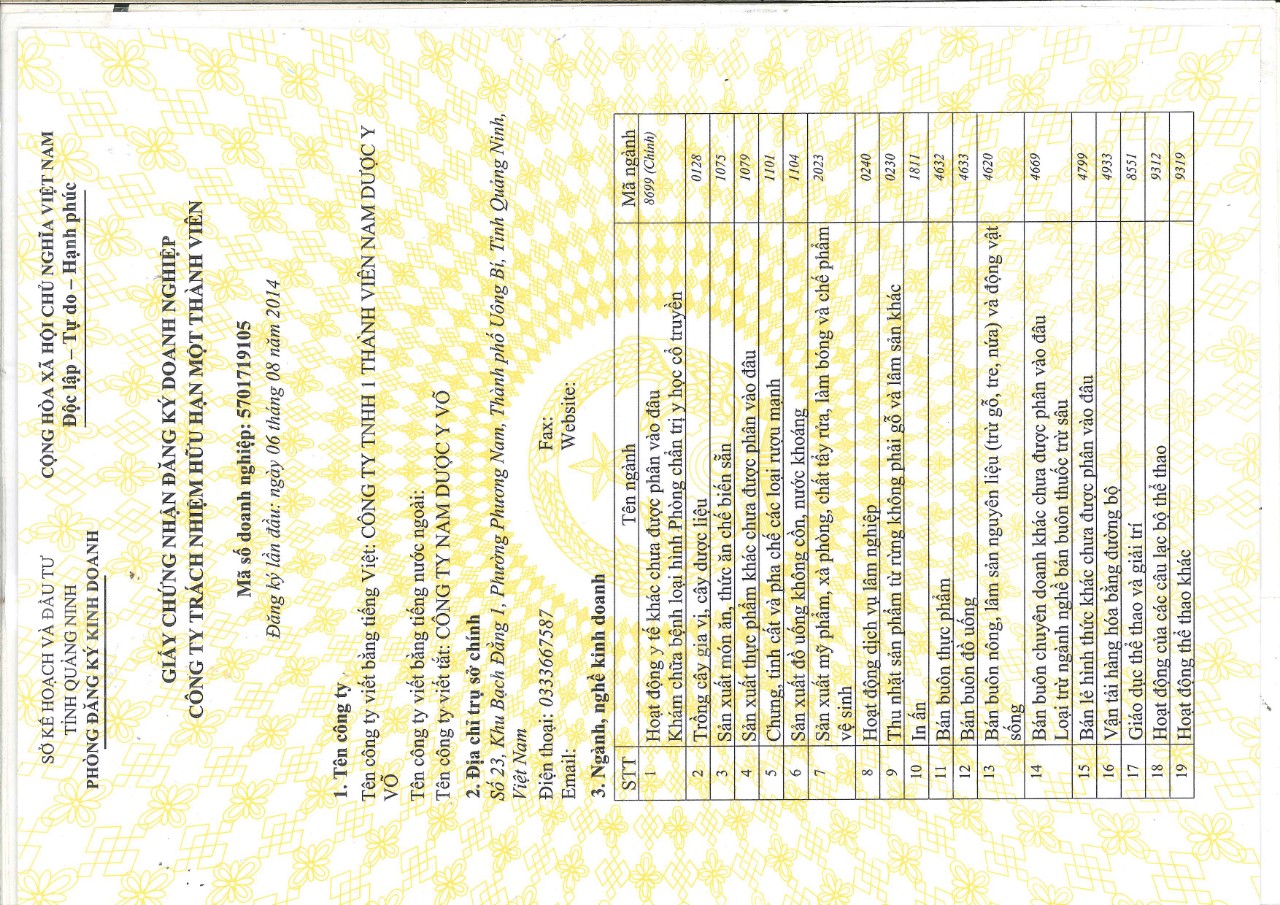 Tên đơn vị/nhà sản xuất: Công ty TNHH một thành viên Nam Dược Y Võ