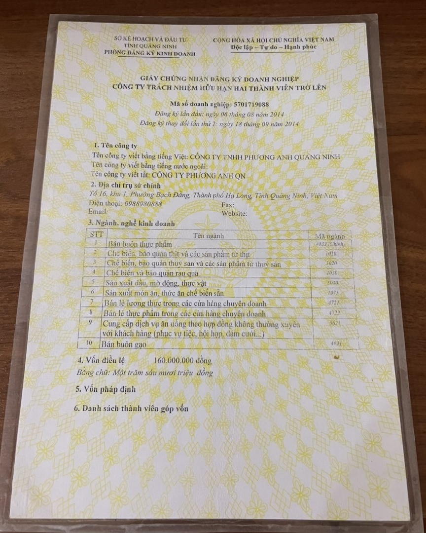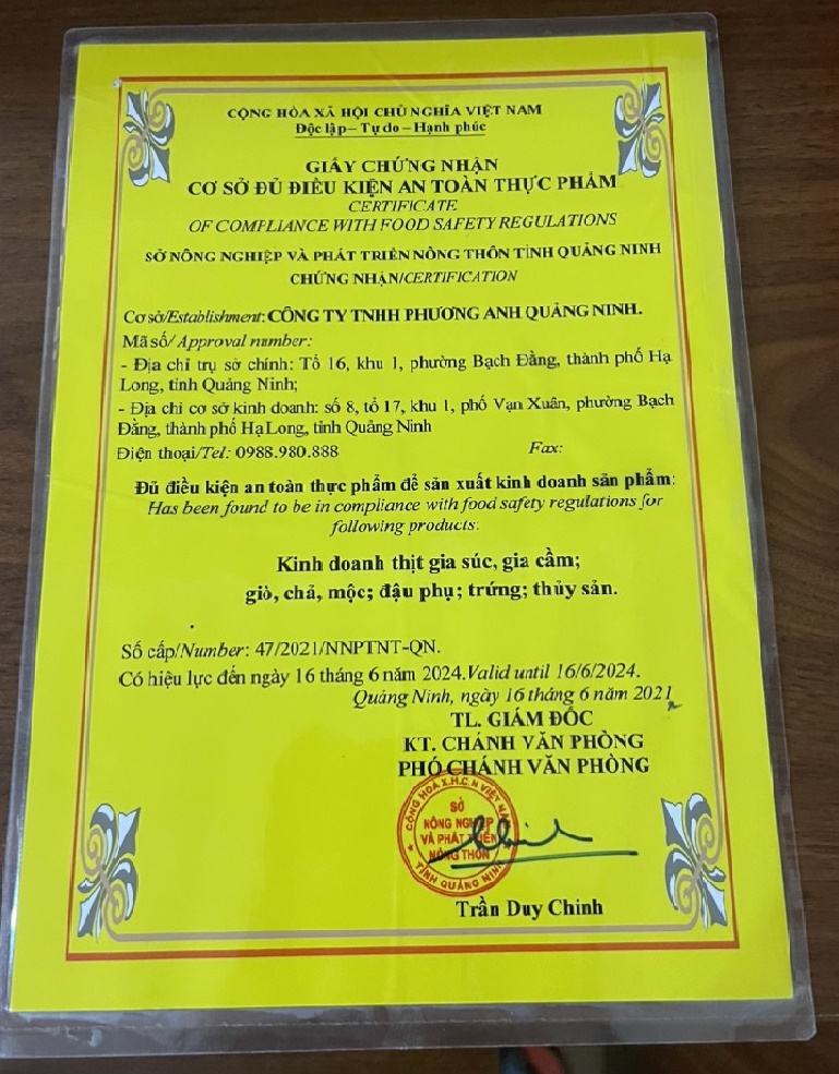 Tên đơn vị/nhà sản xuất: Công ty TNHH Phương Anh Quảng Ninh