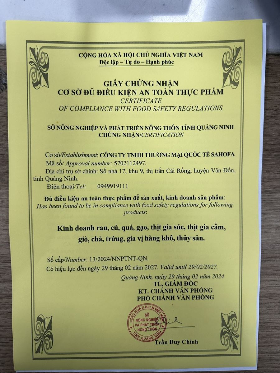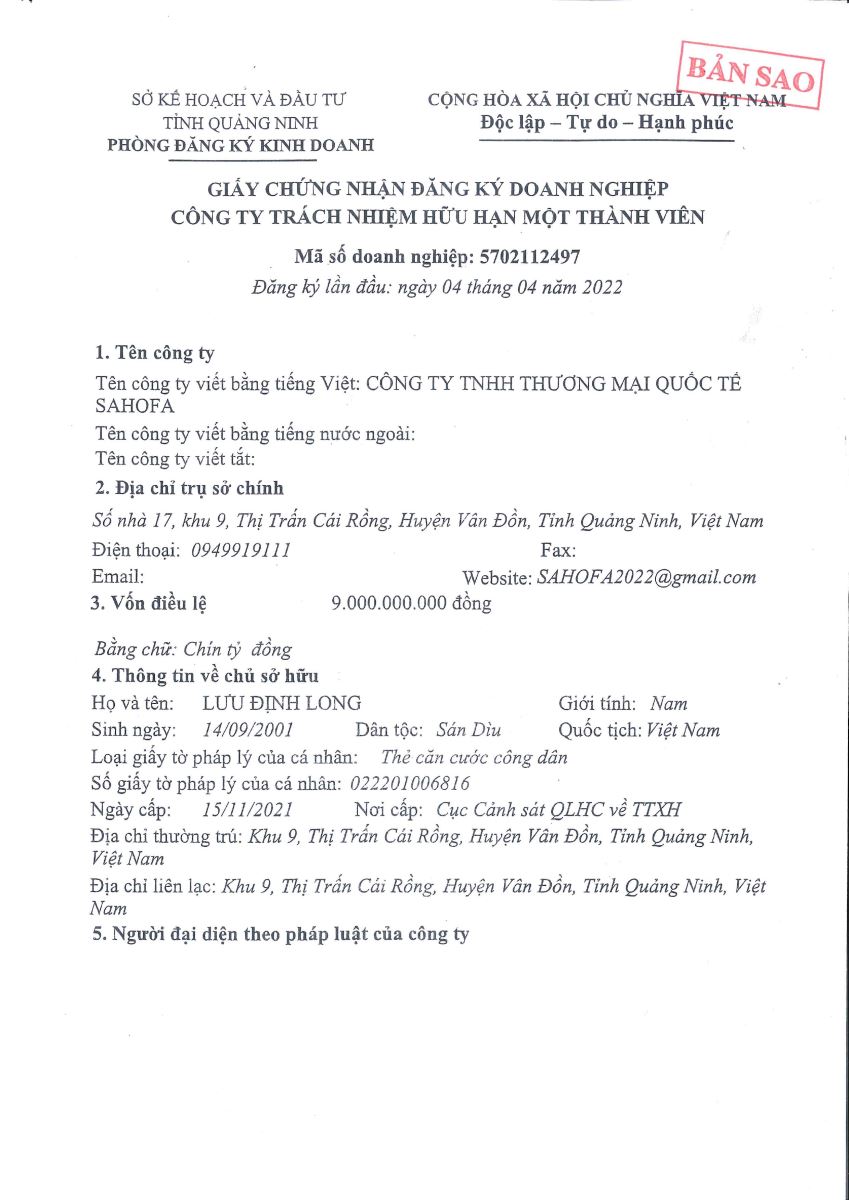 Tên đơn vị/nhà sản xuất: Công ty TNHH thương mại quốc tế SAHOFA