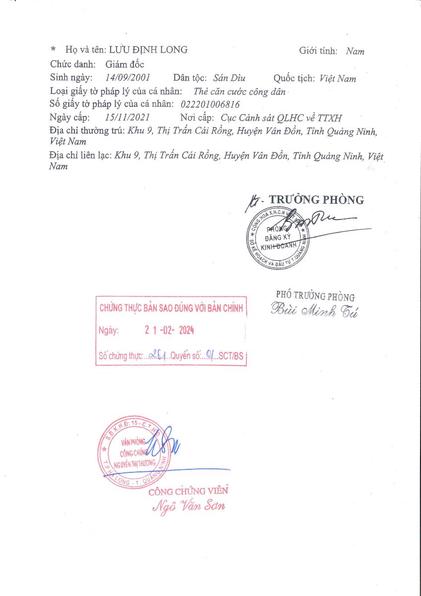 Địa chỉ: Số nhà 17, khu 9, thị trấn Cái Rồng, huyện Vân Đồn, tỉnh Quảng Ninh