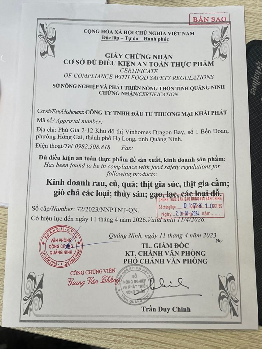Tên đơn vị/nhà sản xuất: Công ty TNHH Đầu tư thương mại Khải Phát