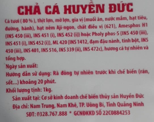 - Tên sản phẩm: Chả cá Huyền Đức - (Cá thể: )