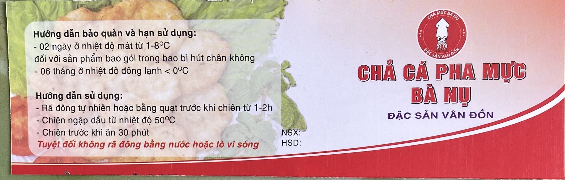 - Tên sản phẩm: Chả cá pha mực Bà Nụ - (Cá thể: )