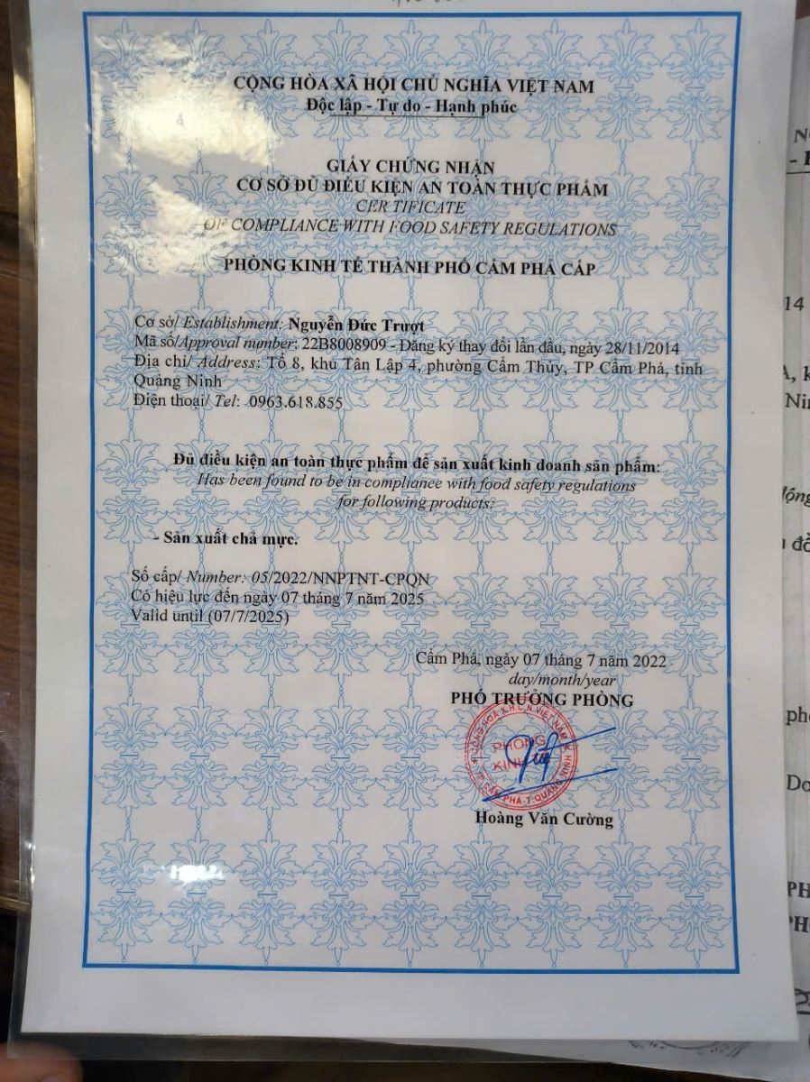 Tên đơn vị/nhà sản xuất: Cơ sở Nguyễn Đức Trượt