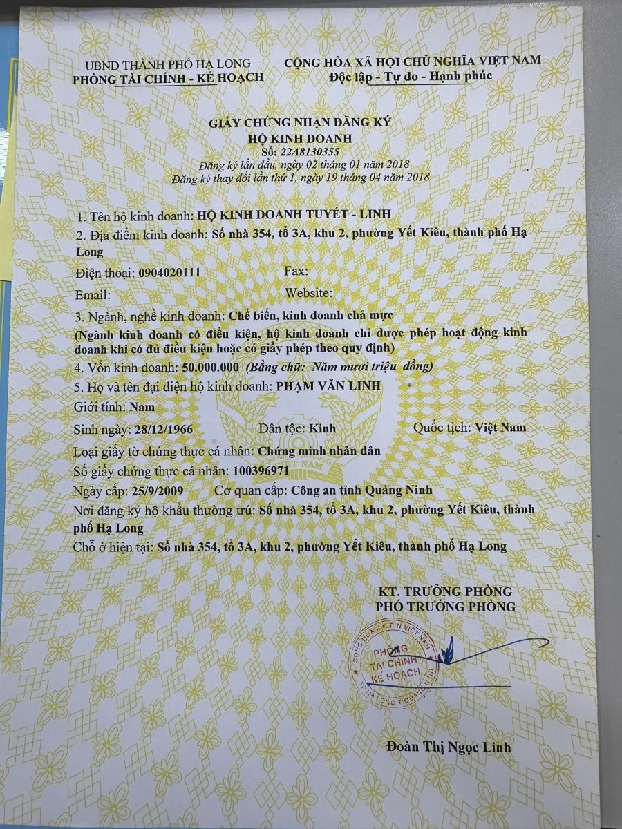 Tên đơn vị/nhà sản xuất: HỘ KINH DOANH TUYẾT - LINH