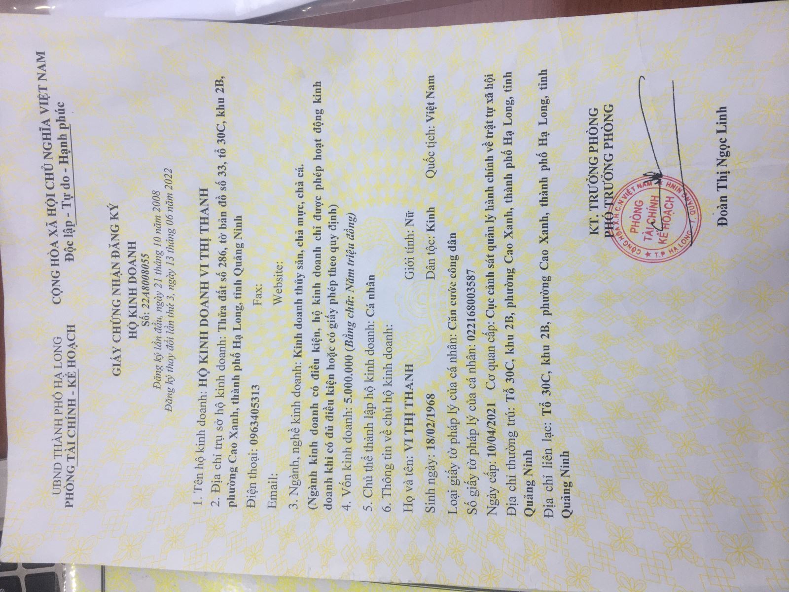 Tên đơn vị/nhà sản xuất: HỘ KINH DOANH VI THỊ THANH
