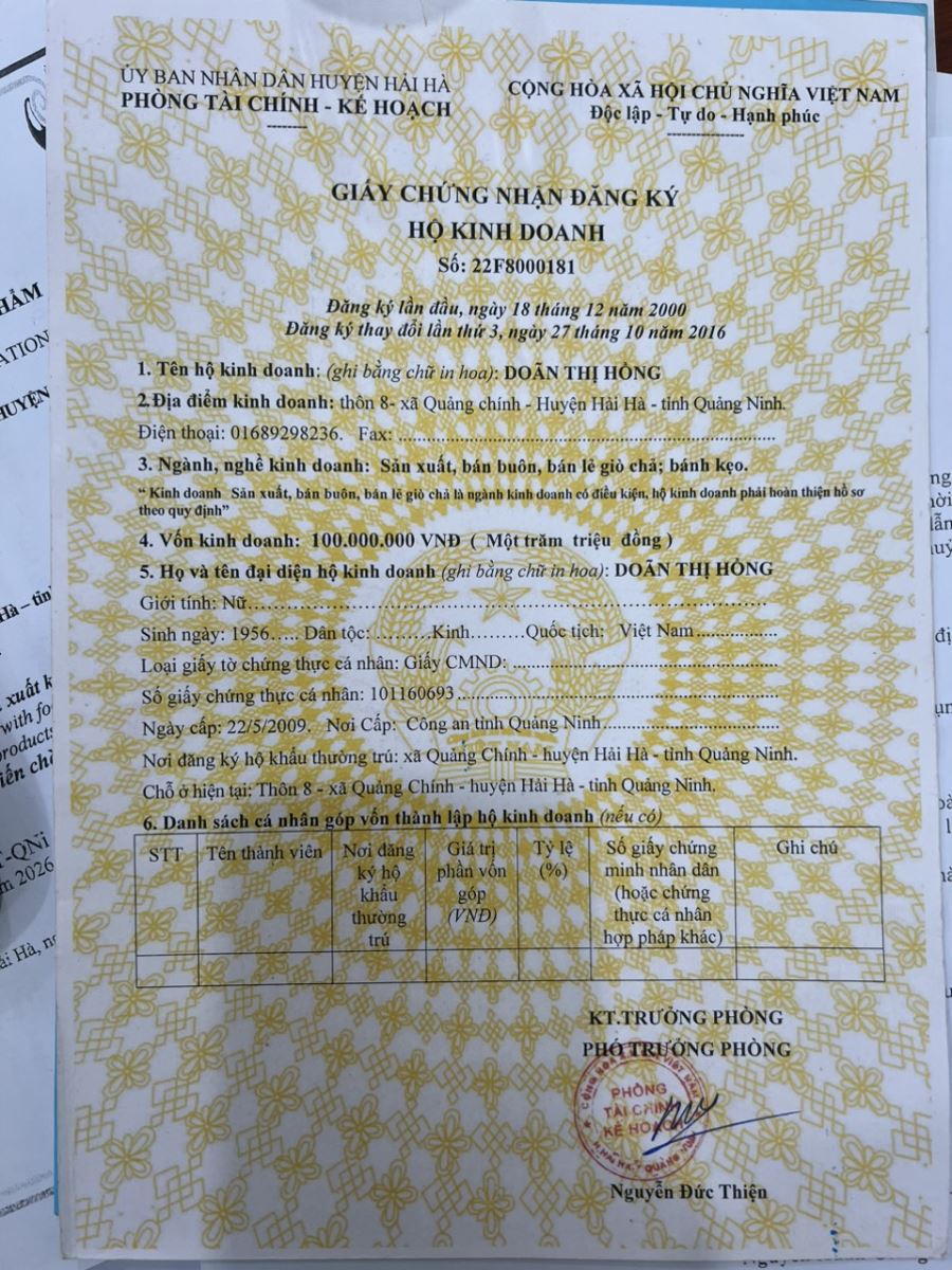 Tên đơn vị/nhà sản xuất: Doãn Thị Hồng