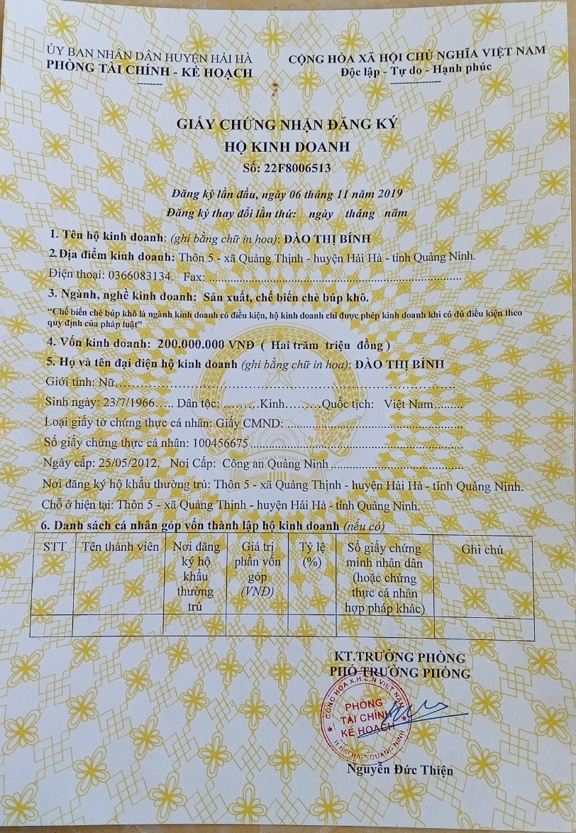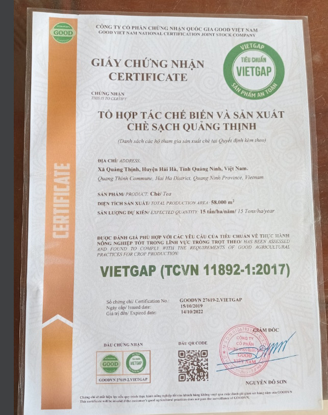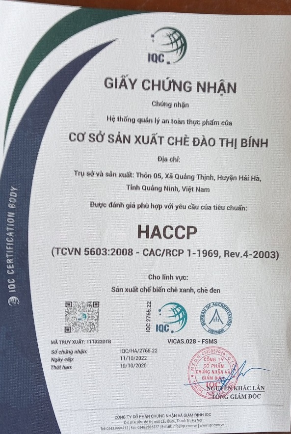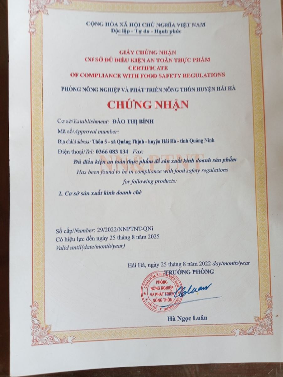 Tên đơn vị/nhà sản xuất: Cơ sở sản xuất chè Đào Thị Bính