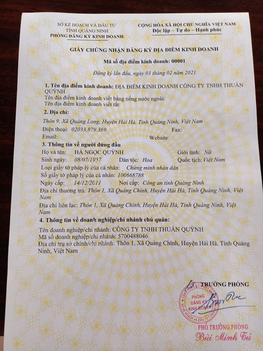 Tên đơn vị/nhà sản xuất: Công ty TNHH Thuấn Quỳnh