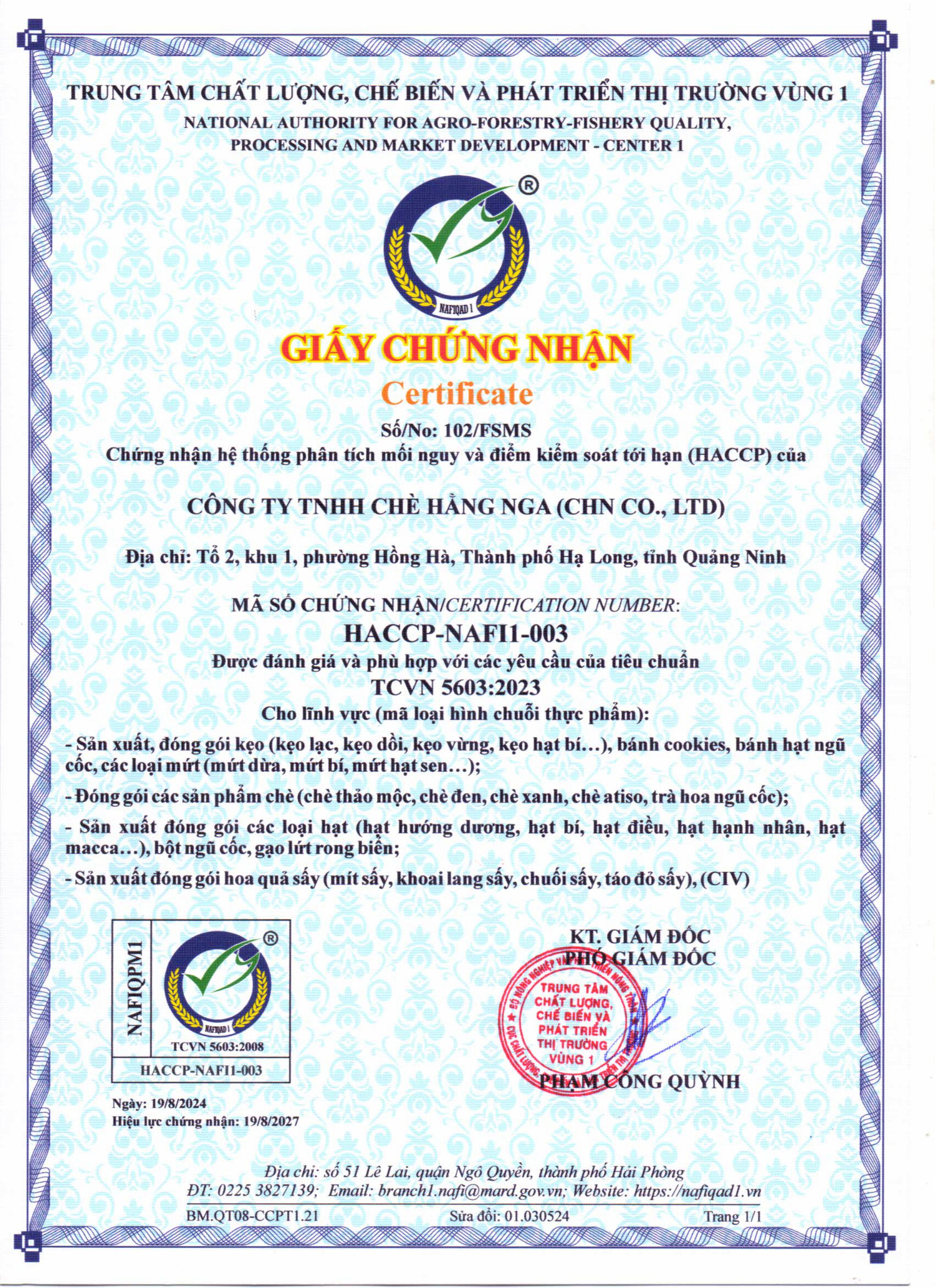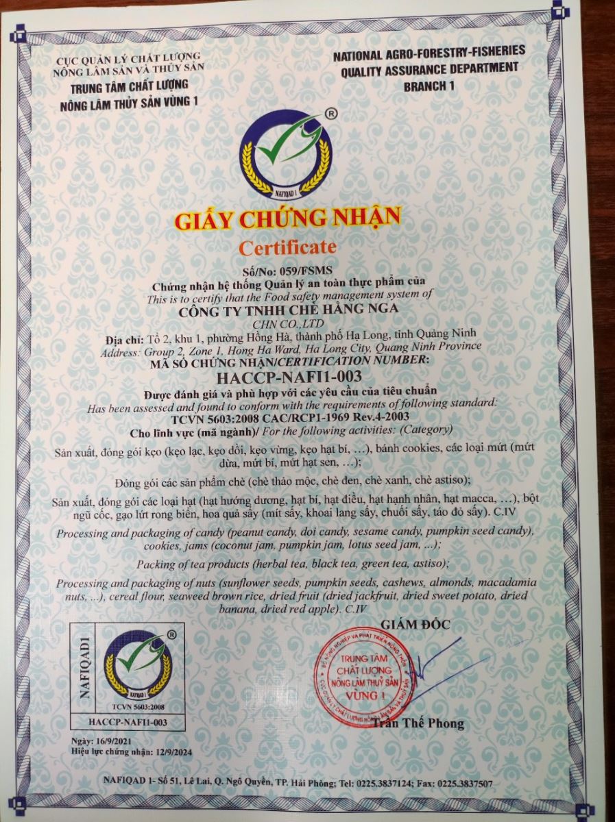 Tên đơn vị/nhà sản xuất: Công ty TNHH Chè Hằng Nga