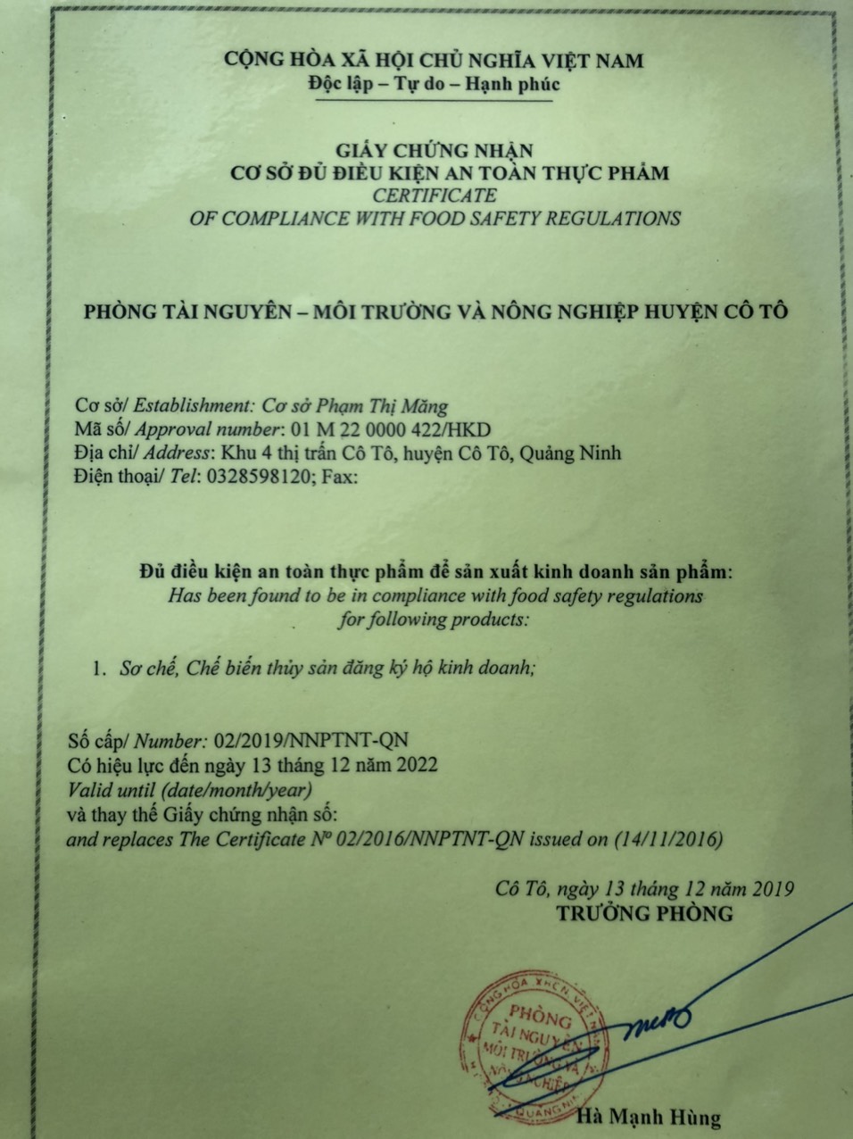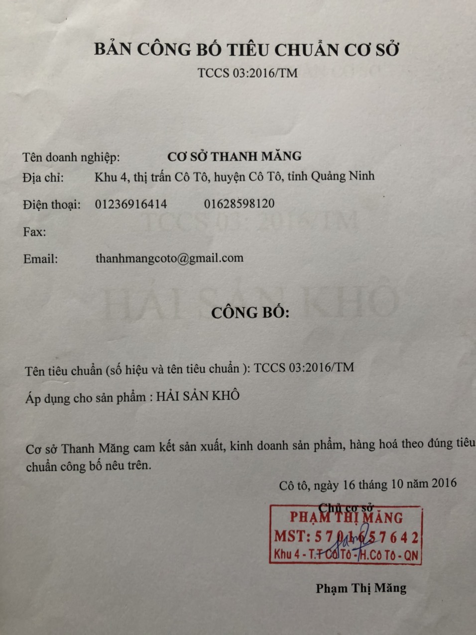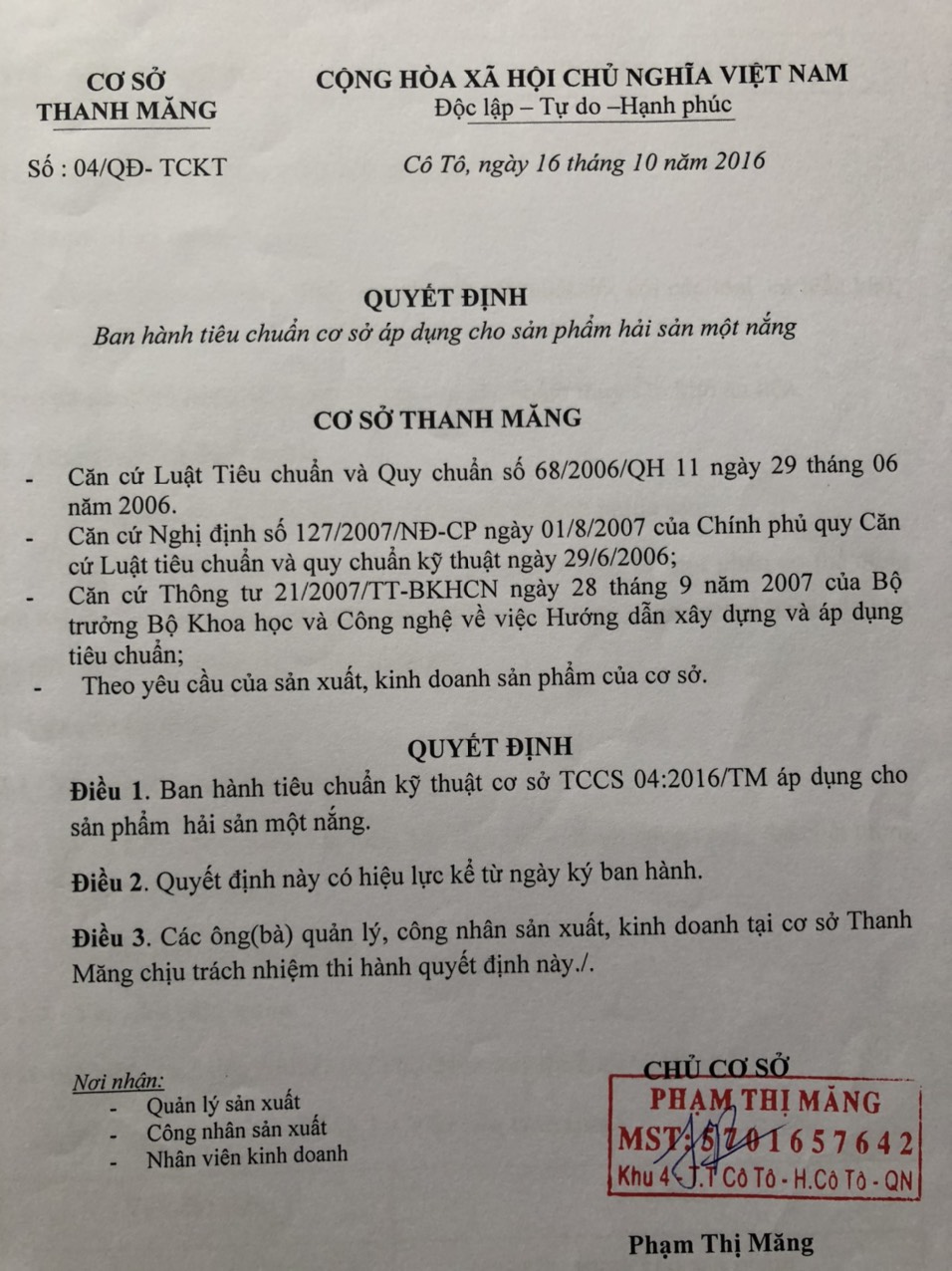 Tên đơn vị/nhà sản xuất: Cơ sở Thanh Măng