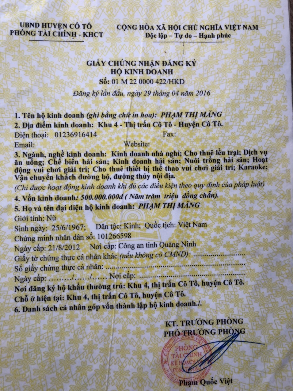 Địa chỉ: Khu 4 thị trấn Cô Tô, huyện Cô Tô, Tỉnh Quảng Ninh
