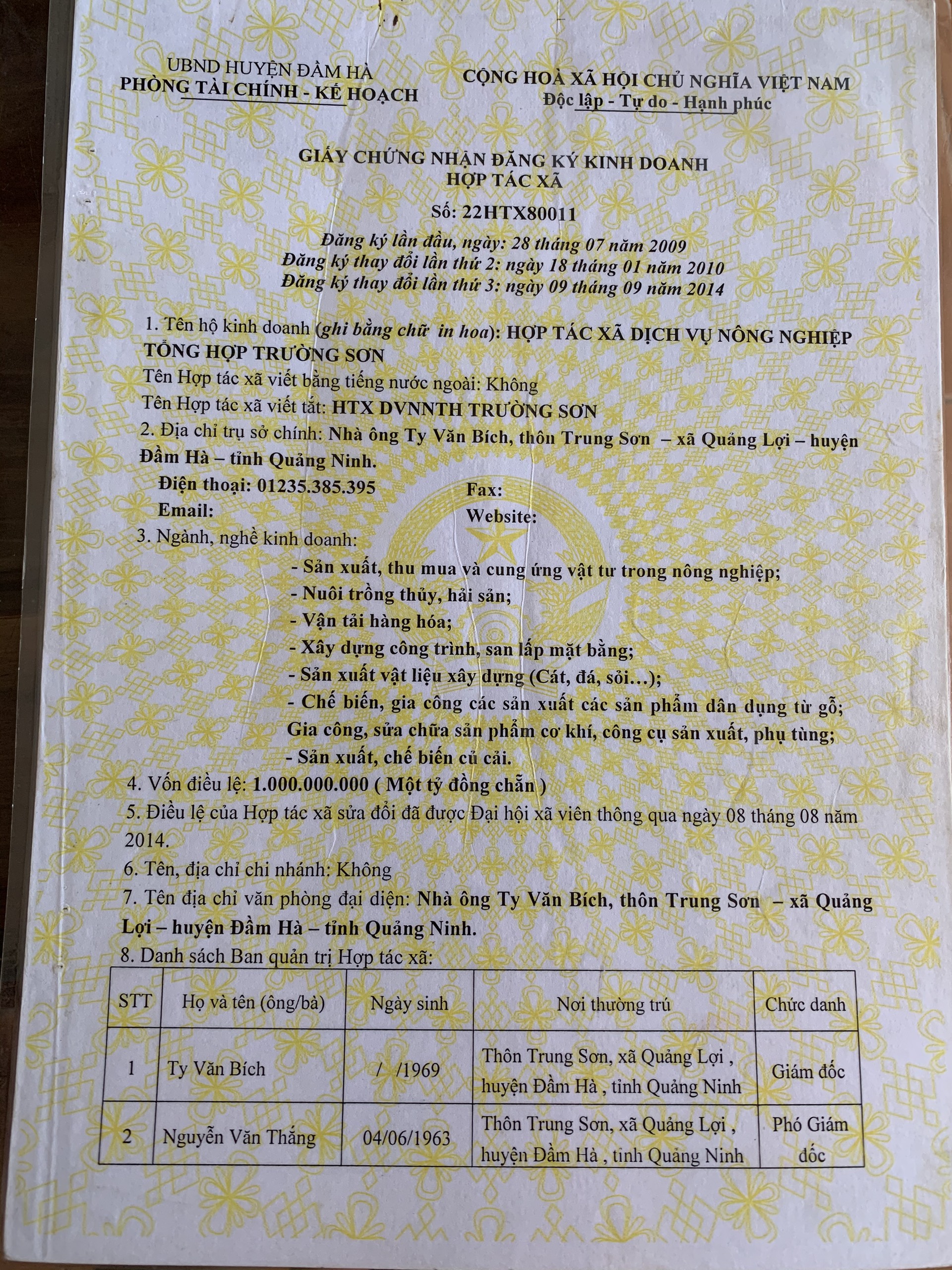 Địa chỉ: Thôn Trung Sơn, xã Quảng Lợi (Quảng Tân), huyện Đầm Hà, tỉnh Quảng Ninh