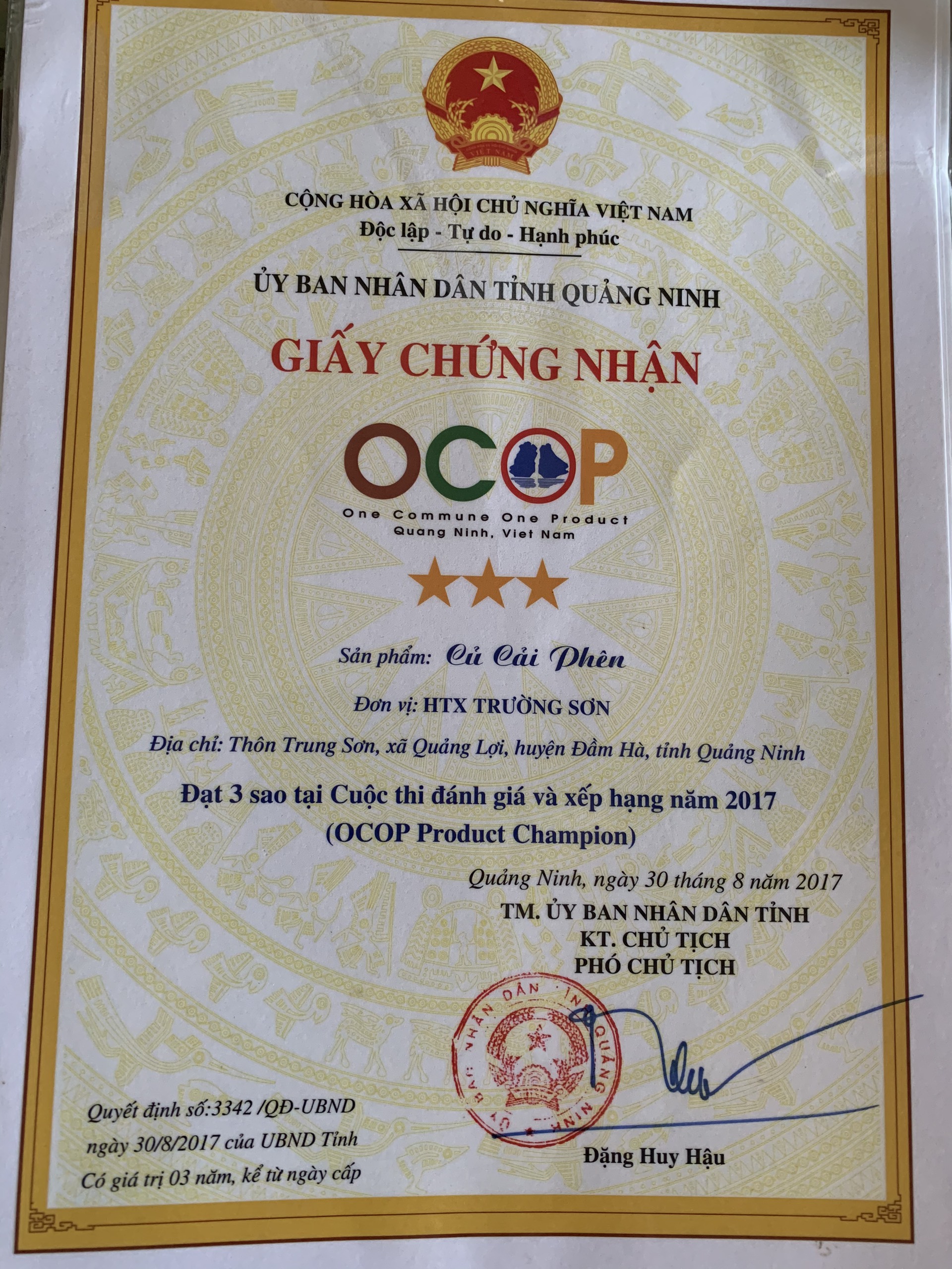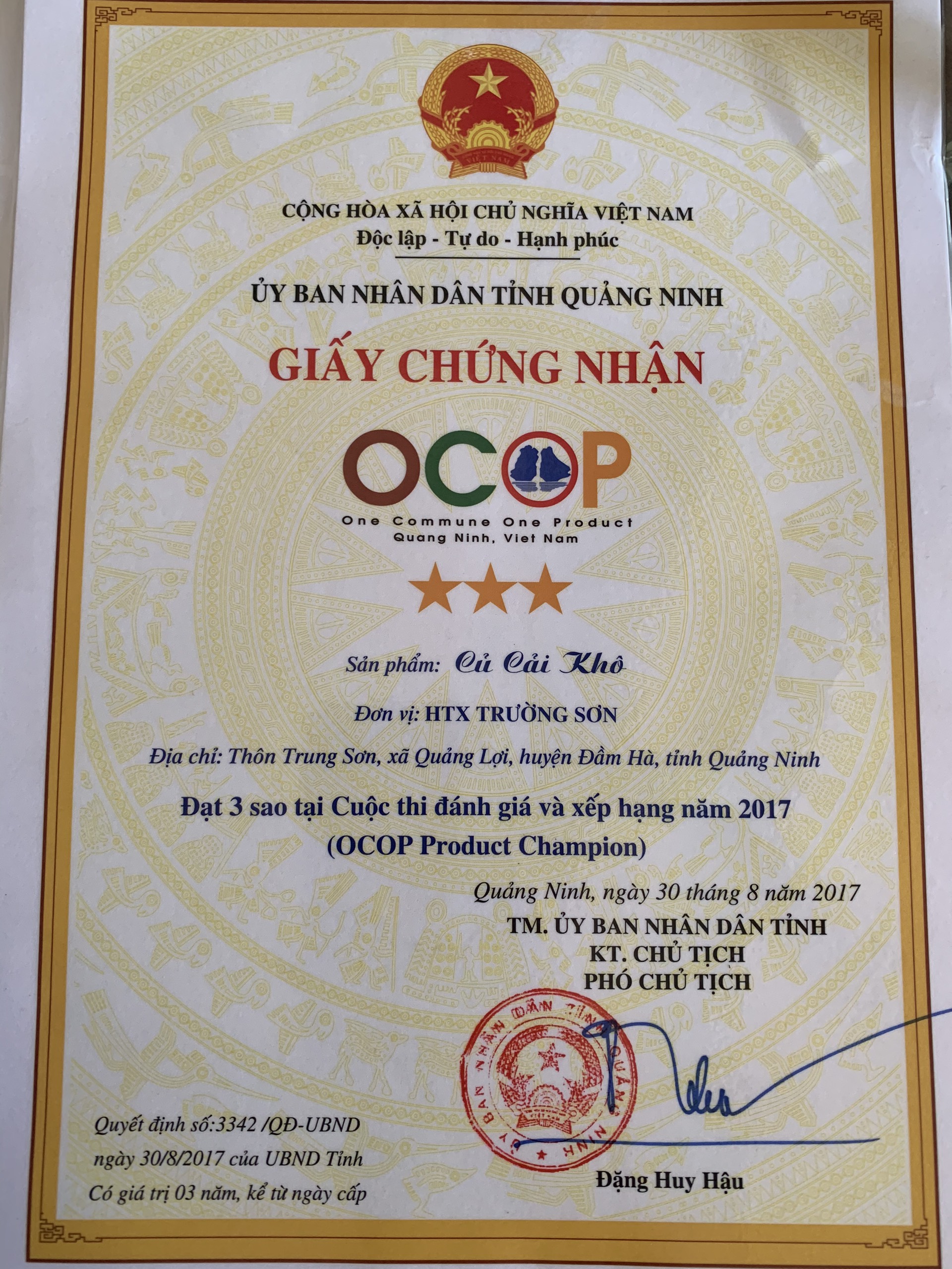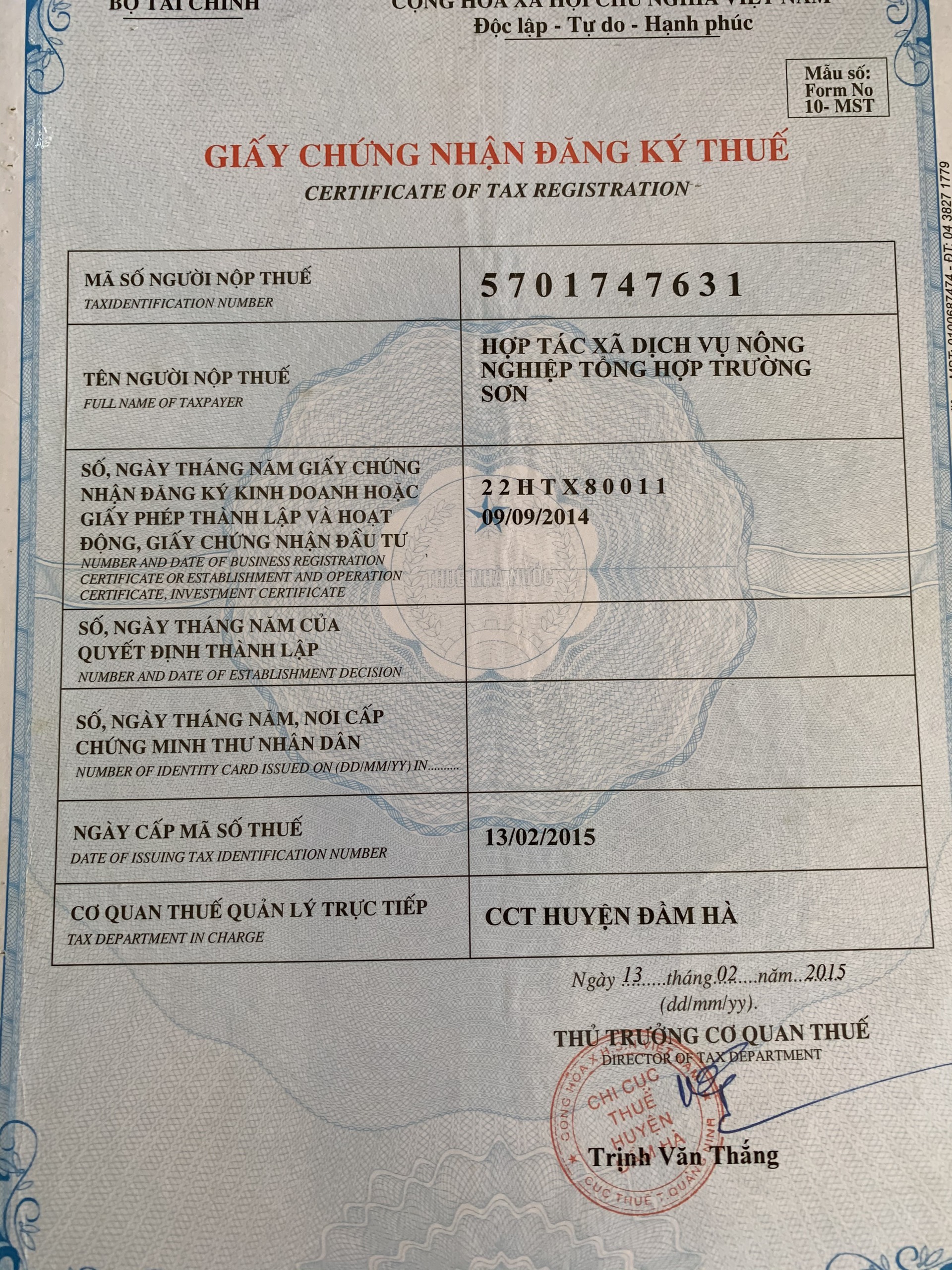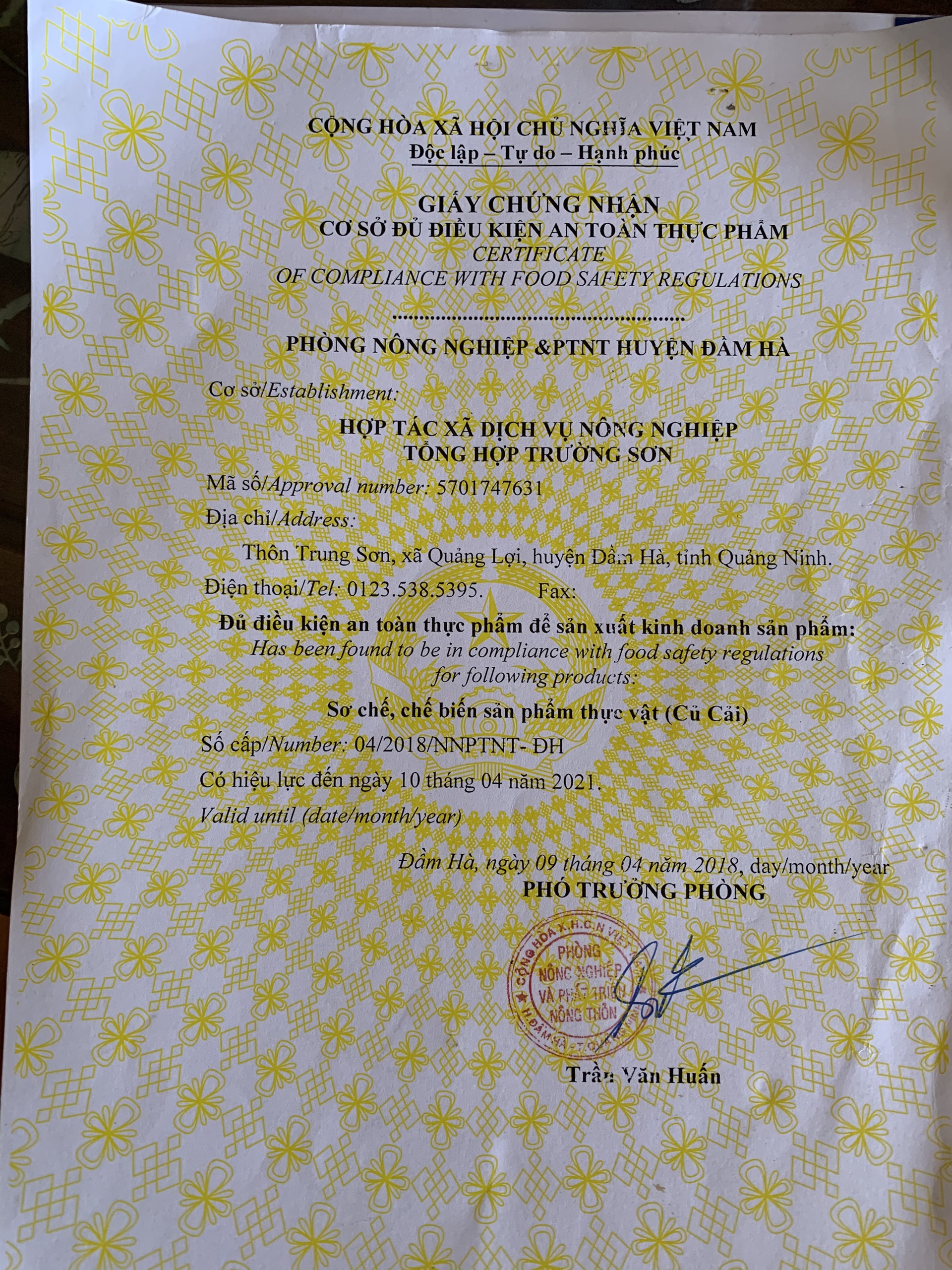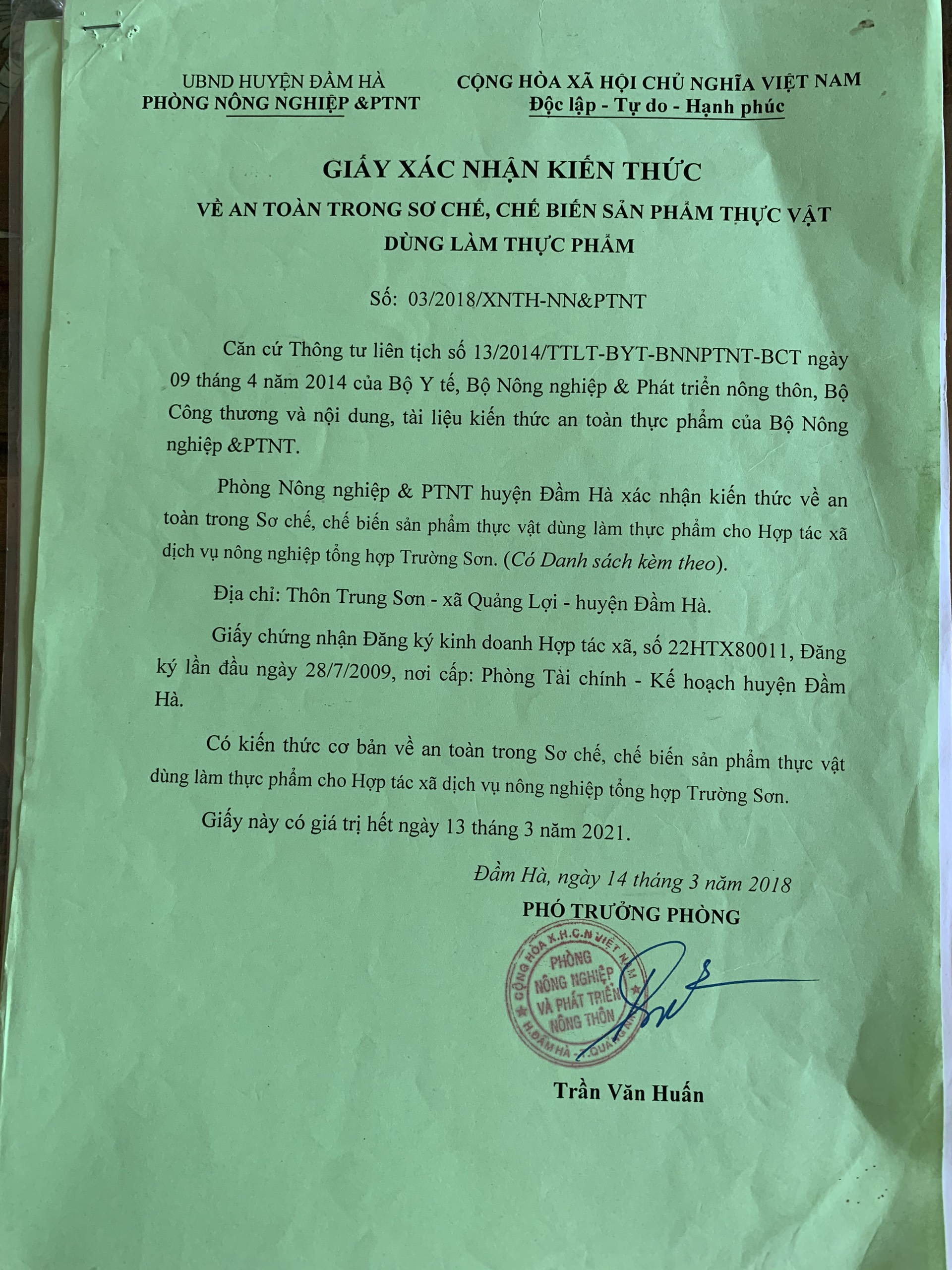 Tên đơn vị/nhà sản xuất: HTX Dịch vụ nông nghiệp Tổng hợp Trường Sơn