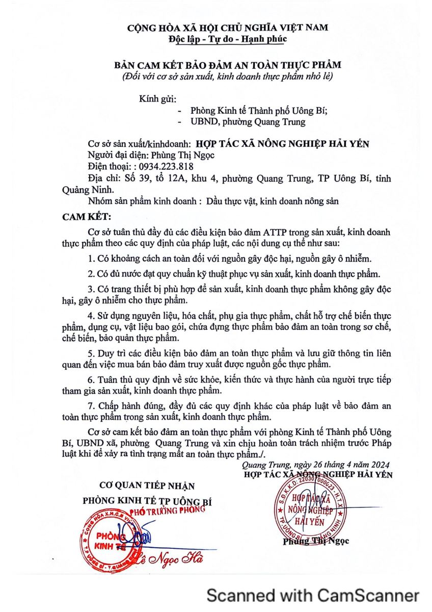 Tên đơn vị/nhà sản xuất: HTX nông nghiệp Hải Yến