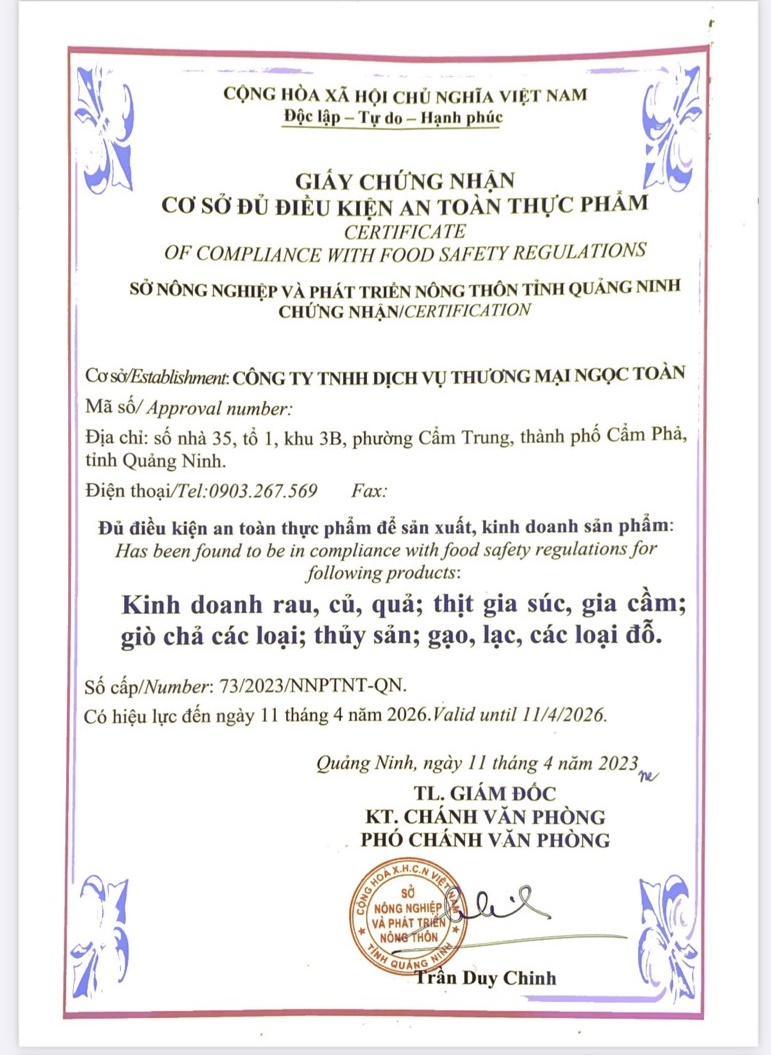 Tên đơn vị/nhà sản xuất: Công ty TNHH dịch vụ thương mại Ngọc Toàn