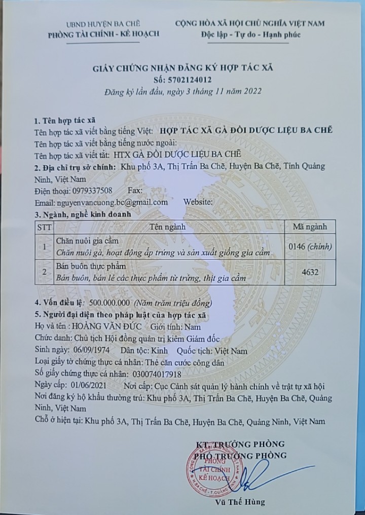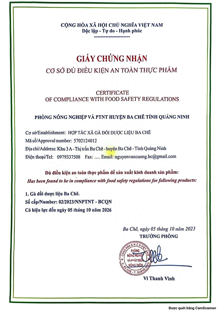 Tên đơn vị/nhà sản xuất: Hợp tác xã gà đồi dược liệu Ba Chẽ