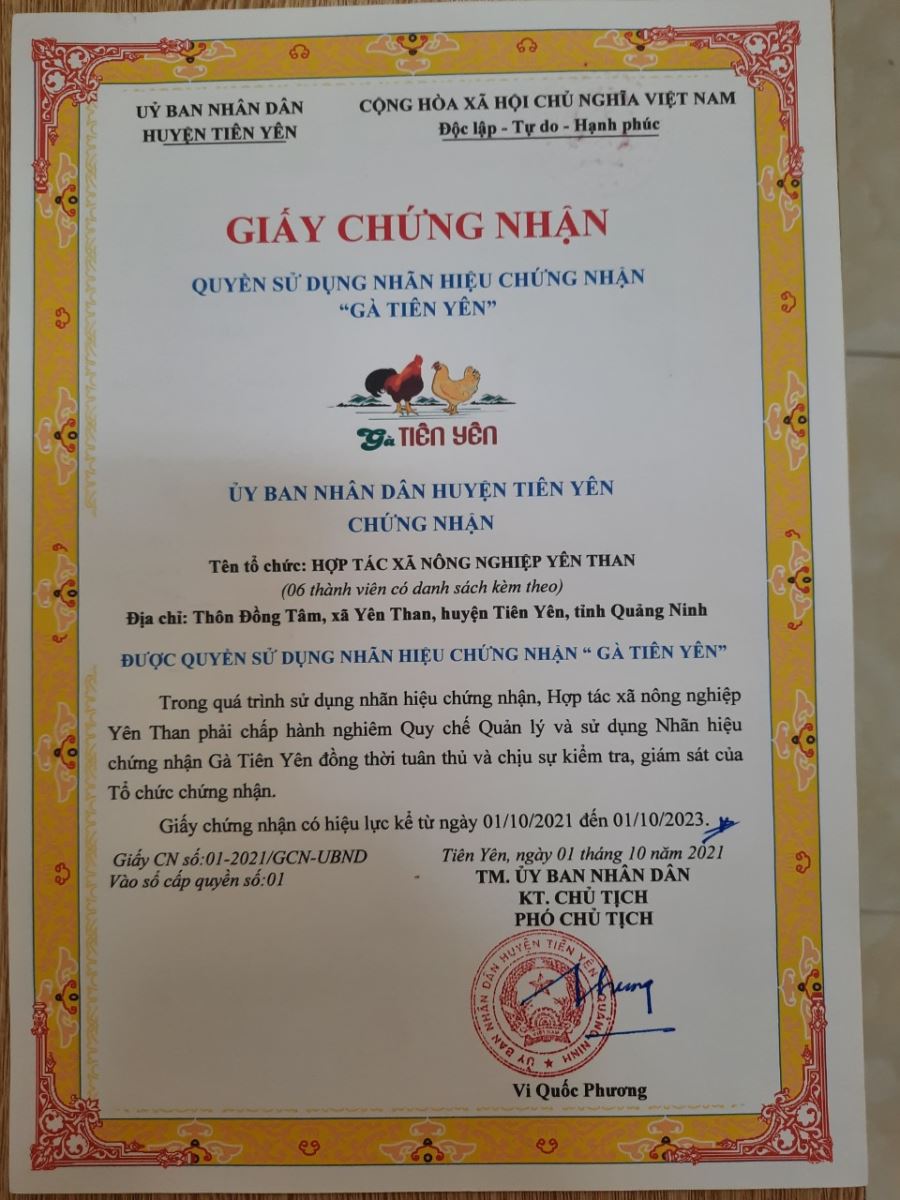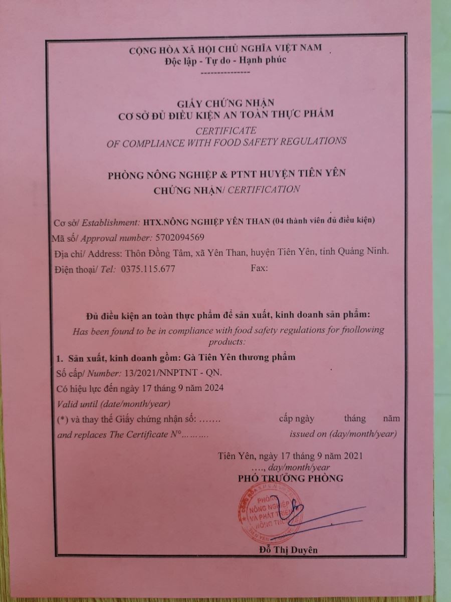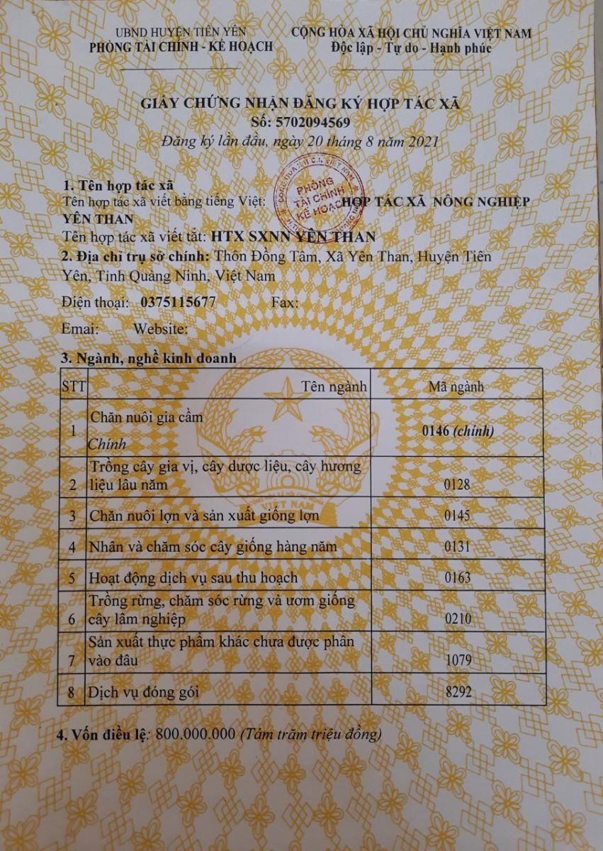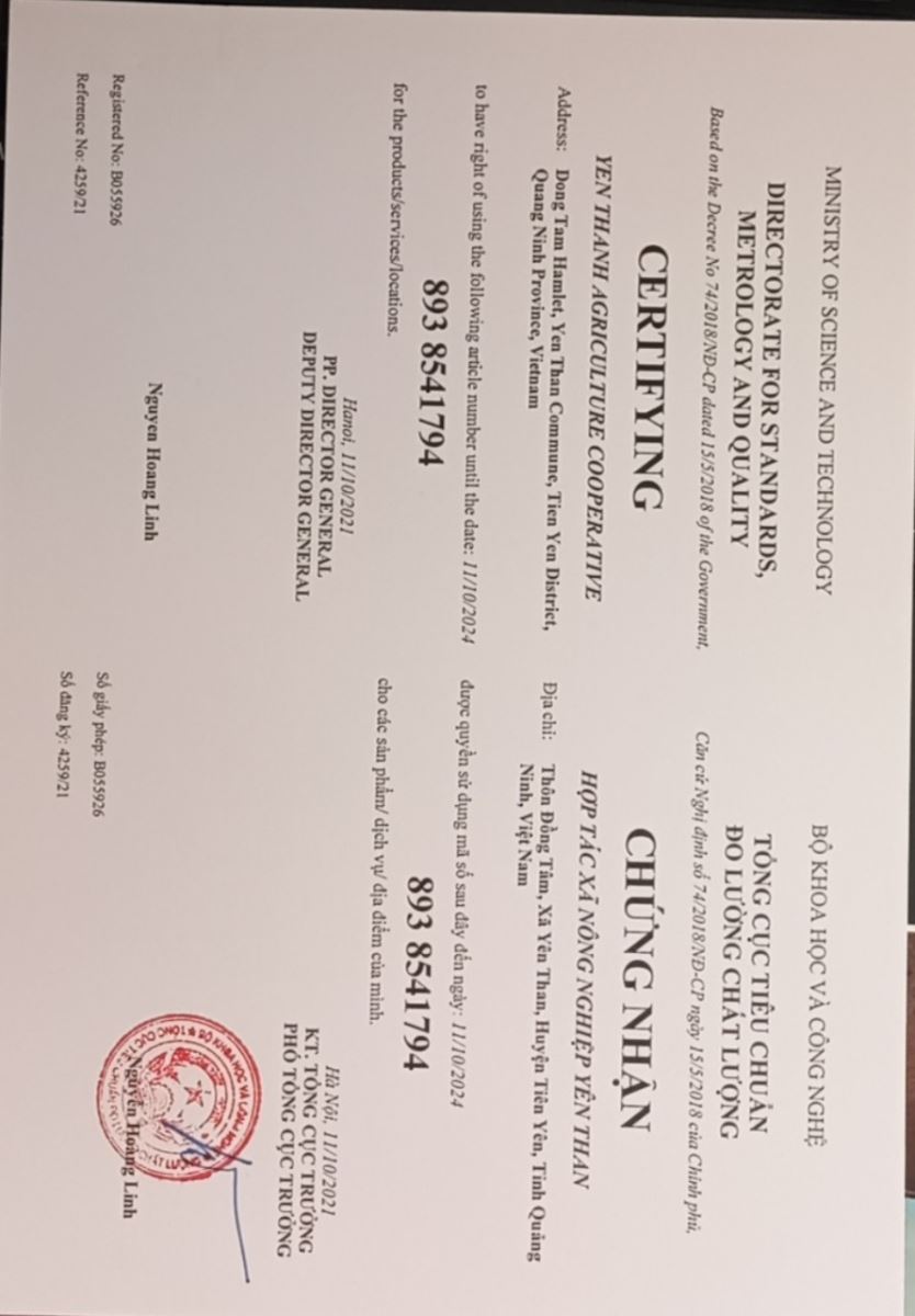 Tên đơn vị/nhà sản xuất: Hợp tác xã Nông nghiệp Yên Than