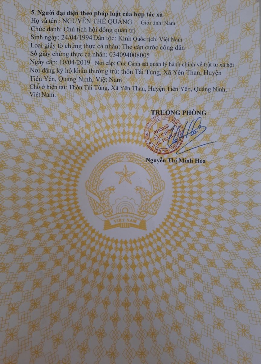 Địa chỉ: Thôn Đồng Tâm, xã Yên Than, huyện Tiên Yên, tỉnh Quảng Ninh