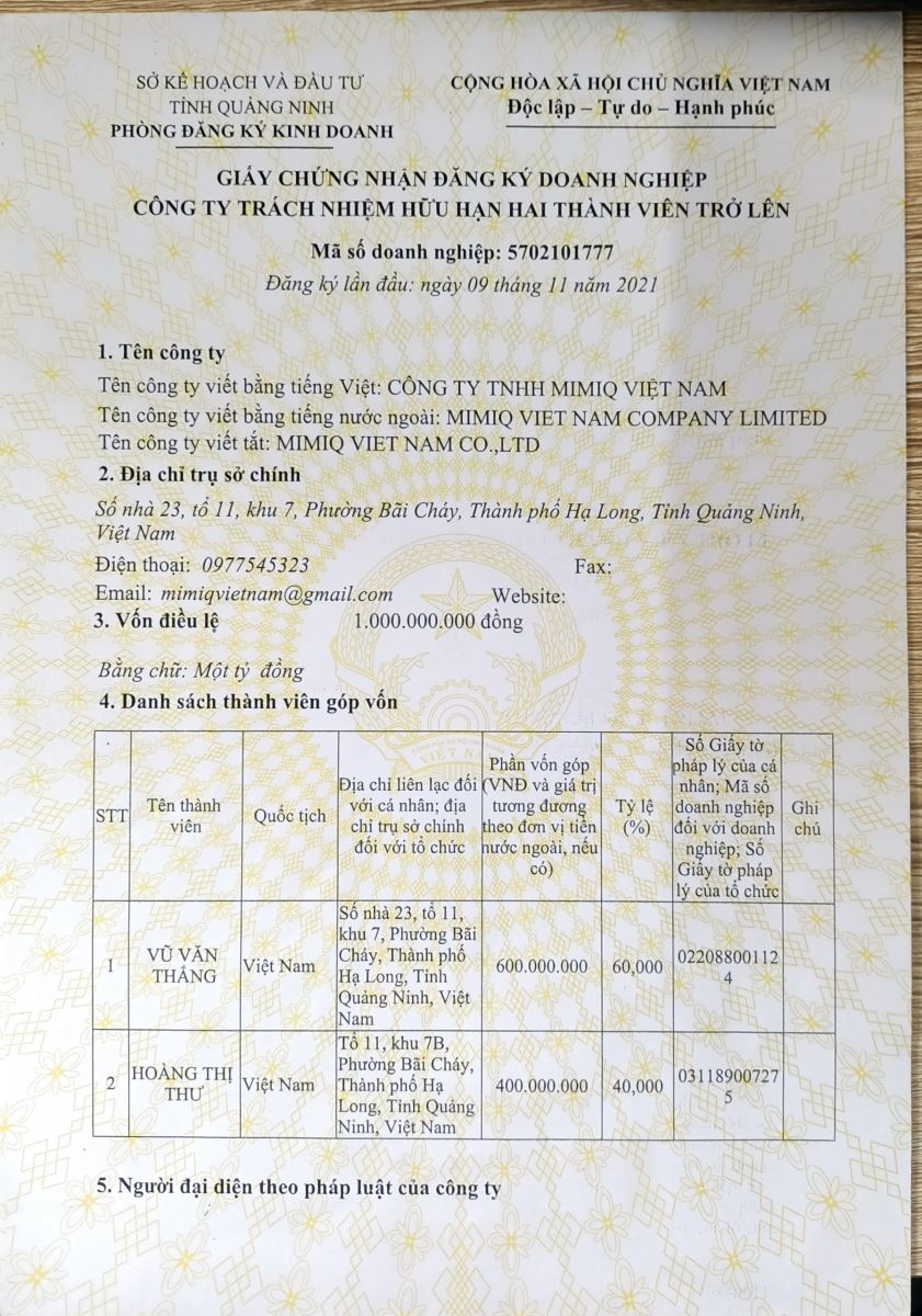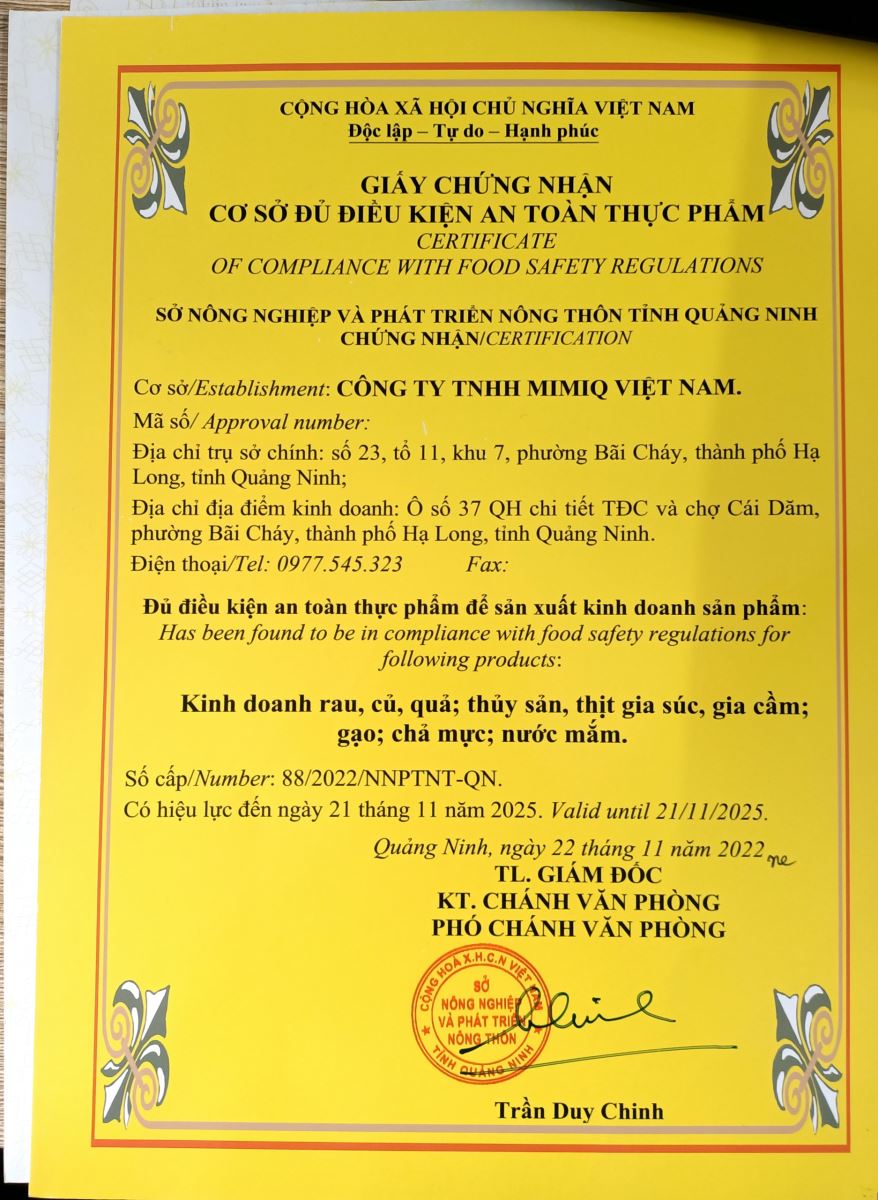 Tên đơn vị/nhà sản xuất: Công ty TNHH MIMI Q Việt Nam