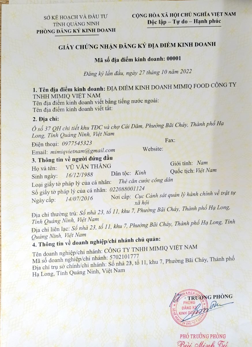 Địa chỉ: Ô số 37 QH chi tiết khi TĐC và chợ Cái Dăm, phường Bãi Cháy, thành phố Hạ Long