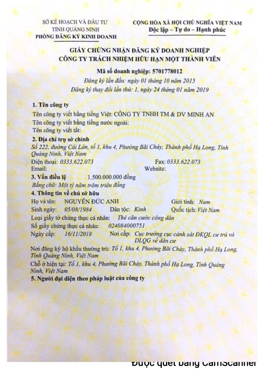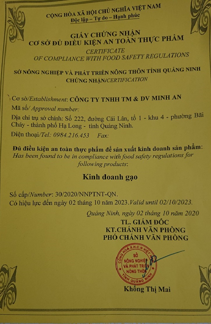 Tên đơn vị/nhà sản xuất: Công ty TNHH TM &DV Minh An