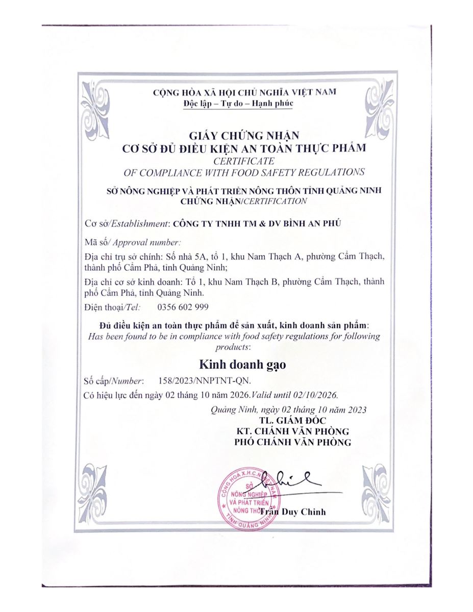 Tên đơn vị/nhà sản xuất: Công ty TNHH TM&DV Bình An Phú