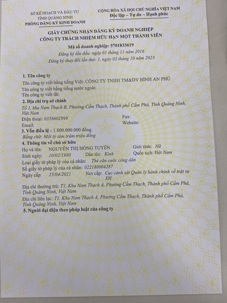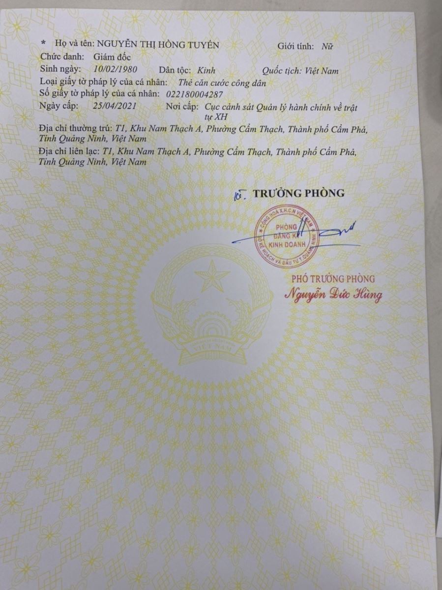 Địa chỉ: Tổ 1, Khu Nam Thạch B, phường Cẩm Thạch, thành phố Cẩm Phả