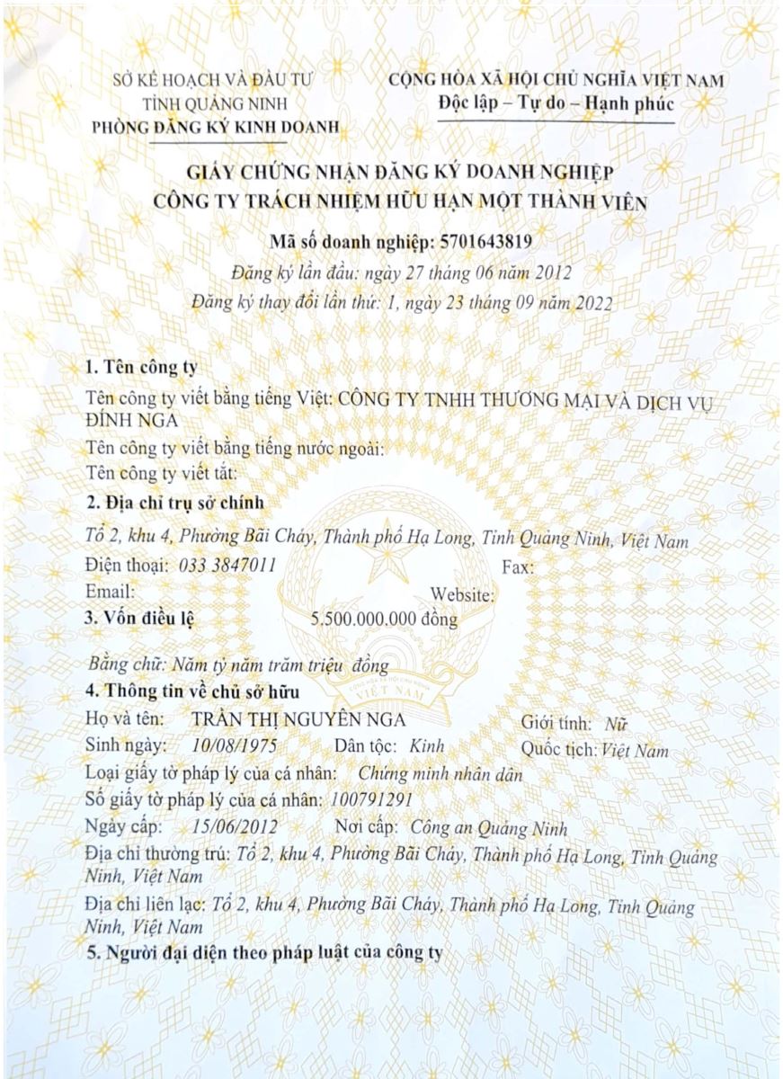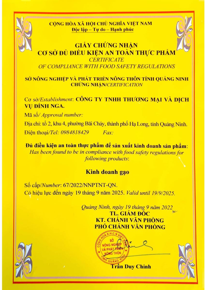 Tên đơn vị/nhà sản xuất: Công ty TNHH thương mại và dịch vụ Đính Nga