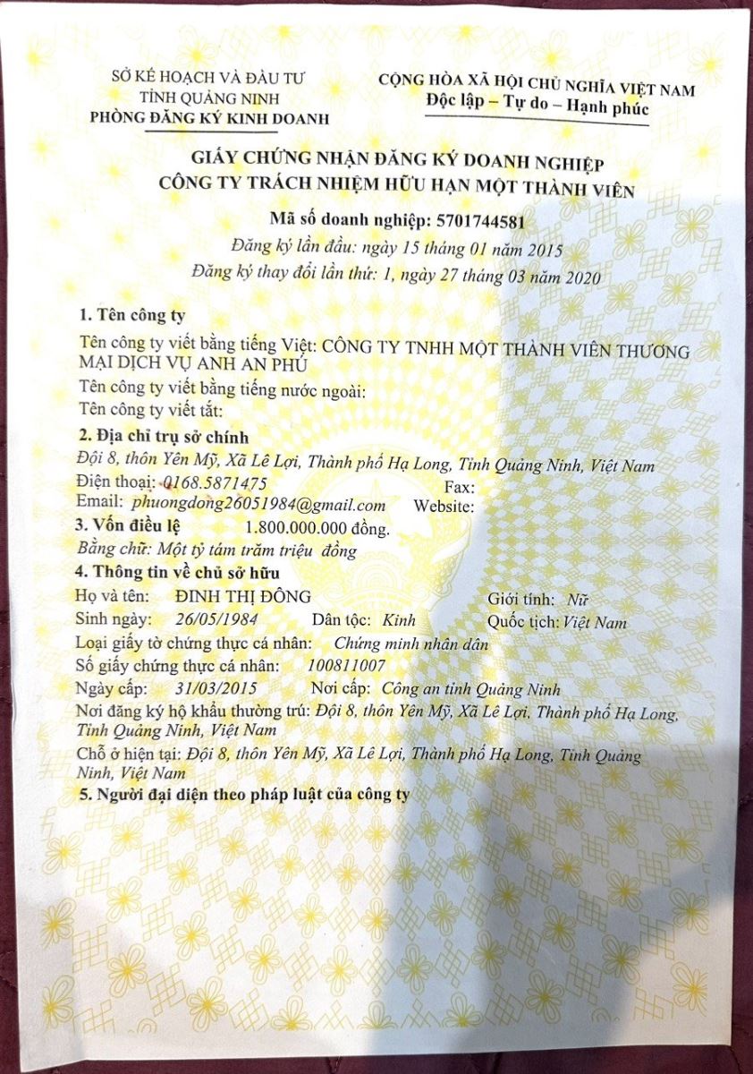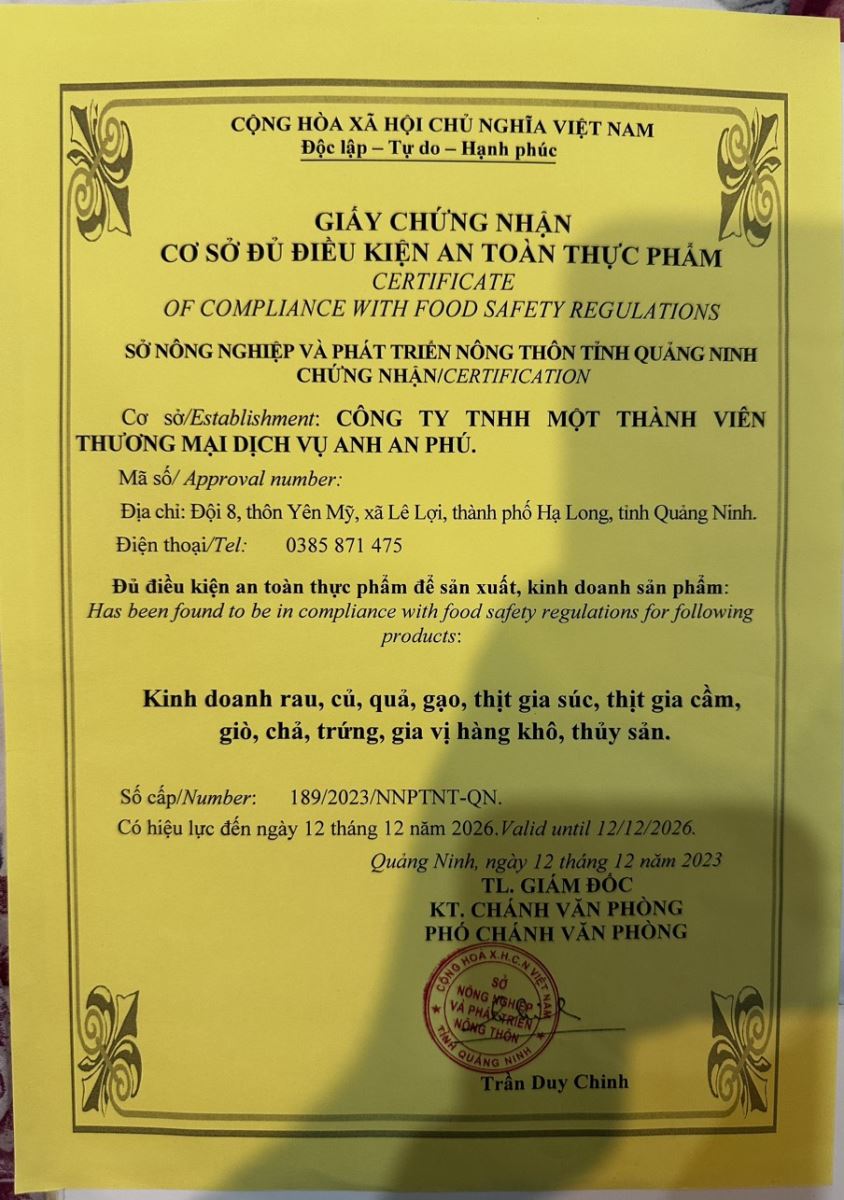 Tên đơn vị/nhà sản xuất: Công ty TNHH MTV Thương mại Dịch vụ Anh An Phú