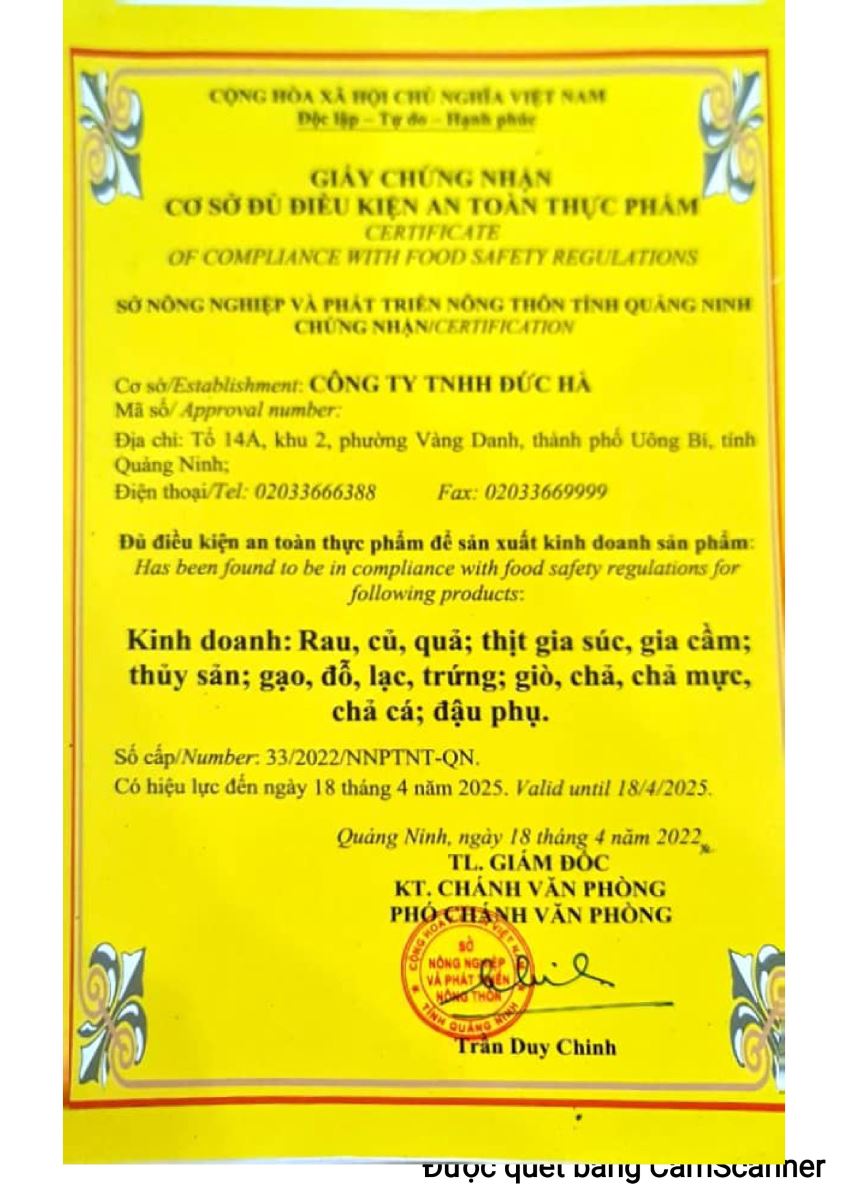 Tên đơn vị/nhà sản xuất: Công ty TNHH Đức Hà